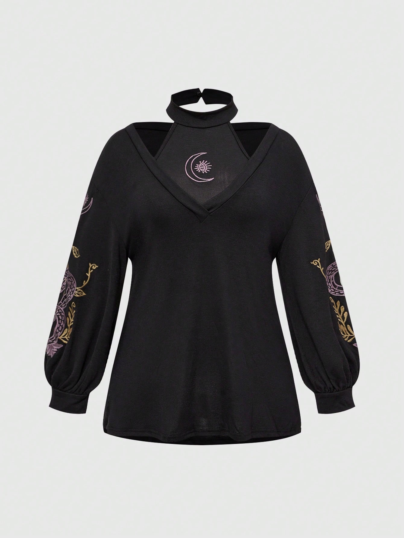 Goth Gothic Snake Skin Floral Embroidery Plus Size Women 2 Pieces Set, Camisole + Outerwear Top