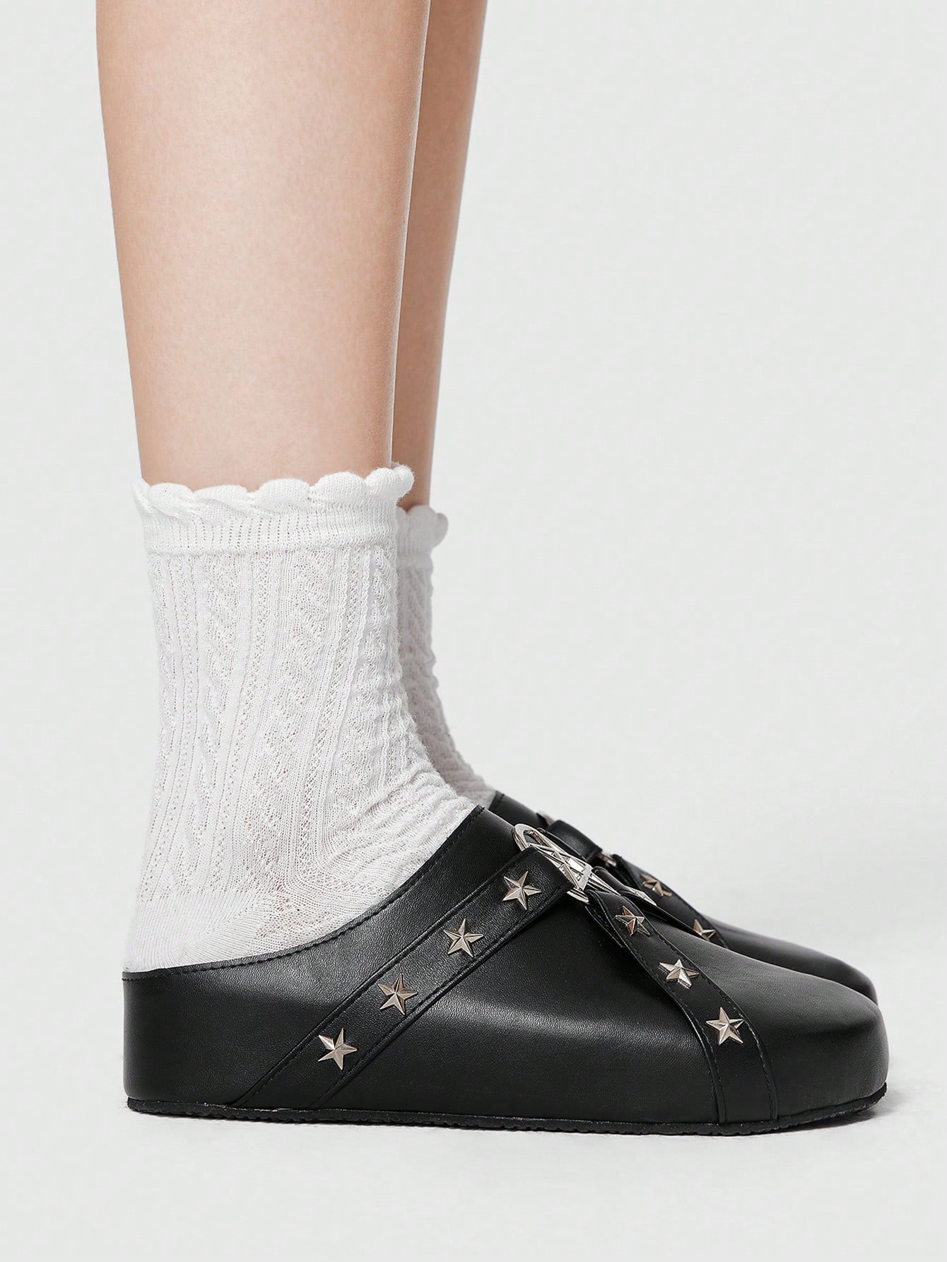 Goth Gothic Star Cutout Mule Shoes, Criss-Cross Strap, Round Toe, Platform Mary Jane Punk Rock Wedge Heeled Loafers For Women Spring Shoes Spring Break Easter, Halloween
