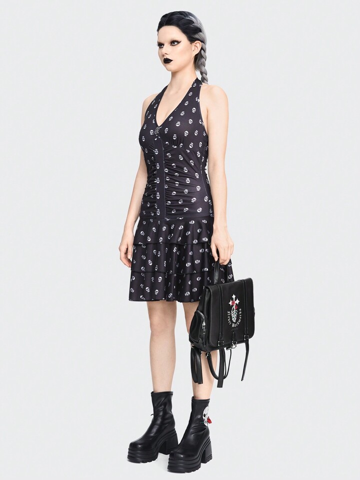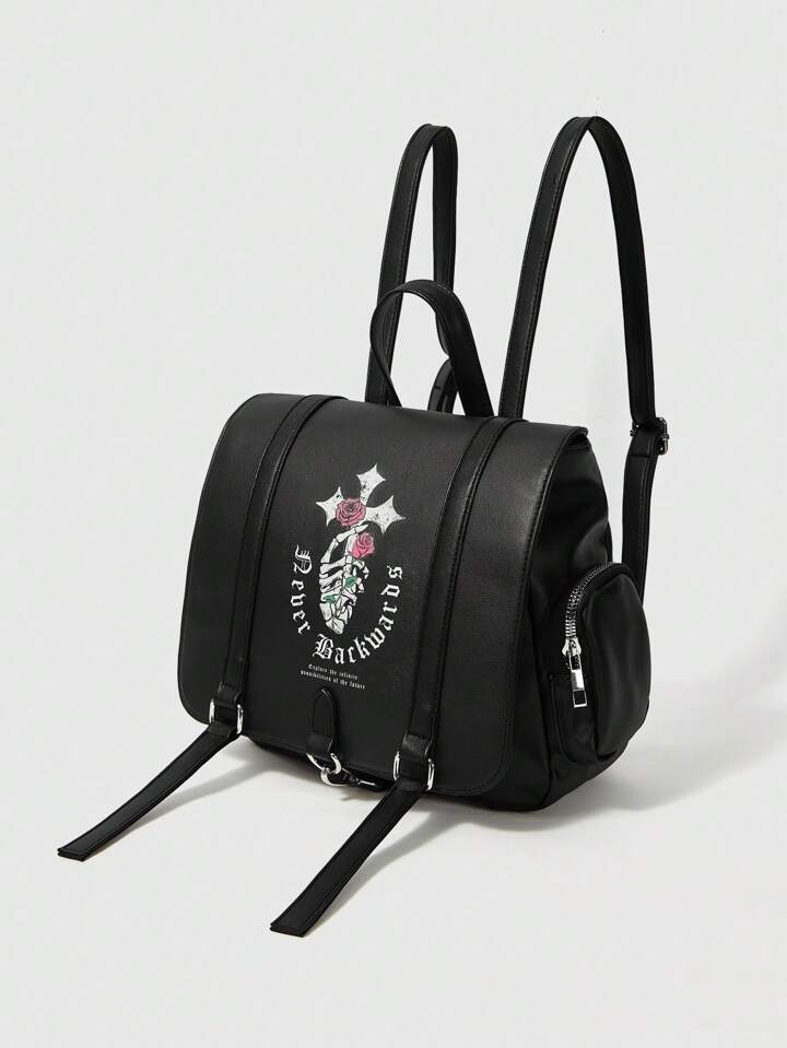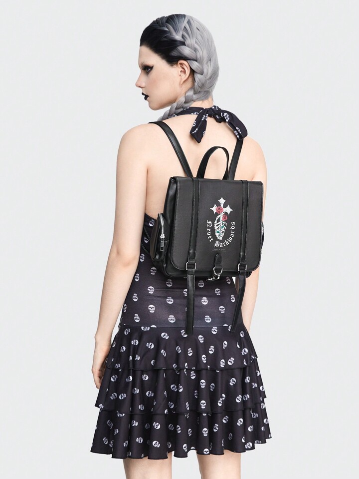 Gothic Style Fashion Backpack, Punk Messenger Bag, Skull & Cross Print Design, For Halloween, Halloween Bags, Perfect For Fancy Party, Halloween Fashion & Gothic Fashion