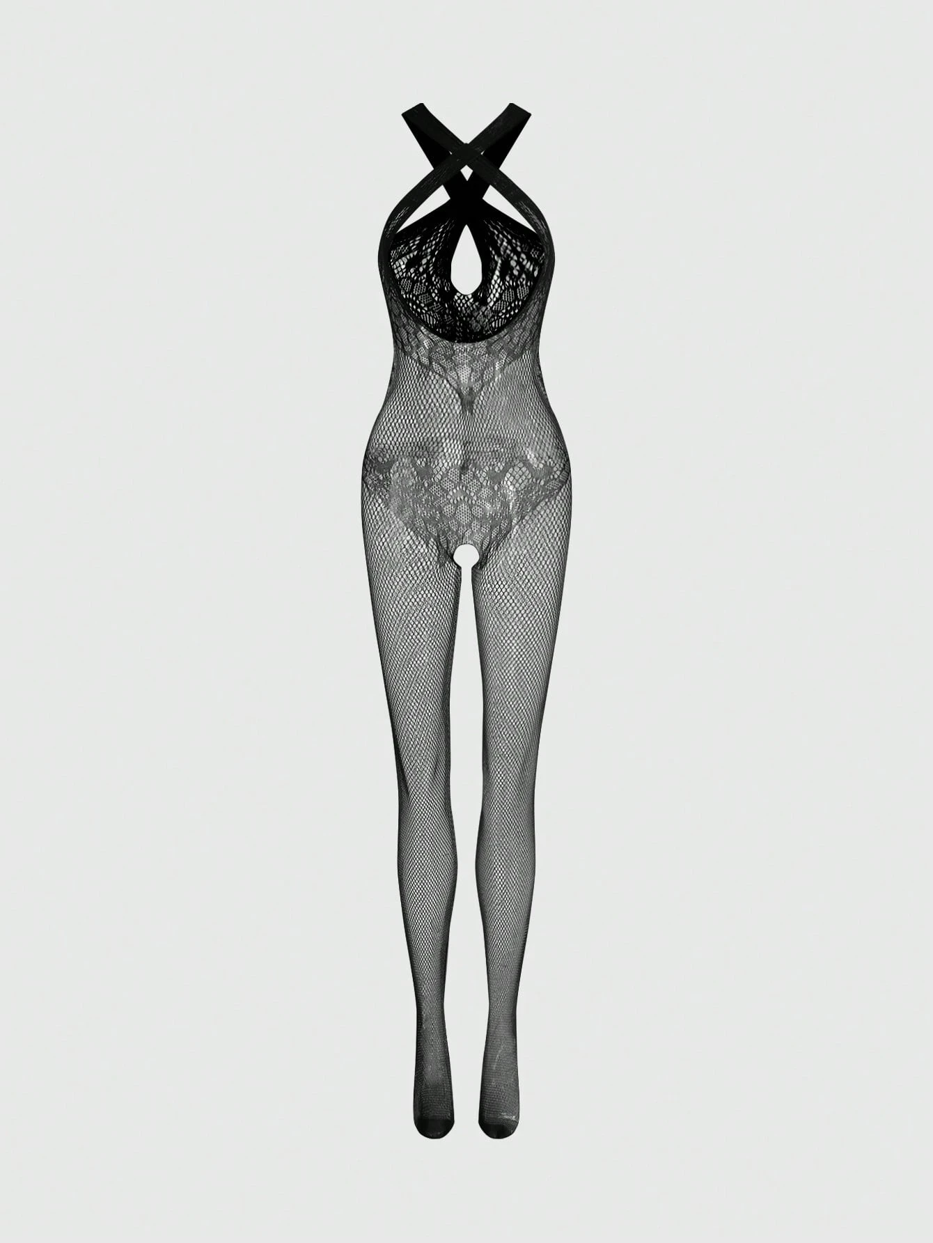 Gothic Style High Stretch Mesh Criss-Cross Crotch Sexy Bodysuits For Women