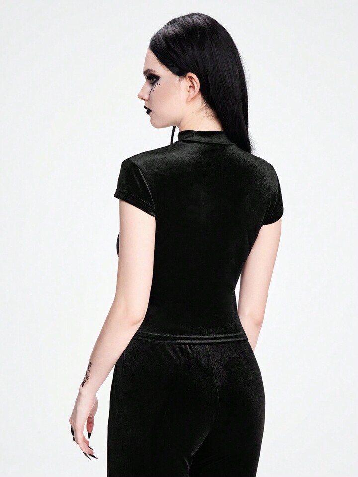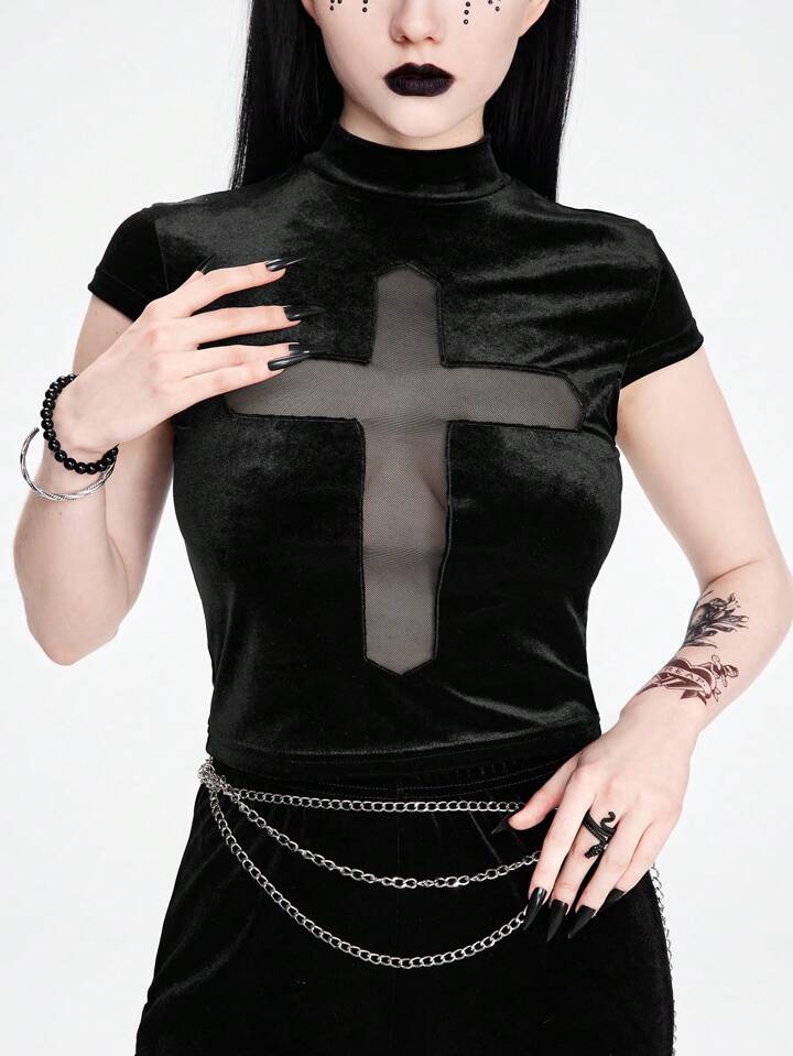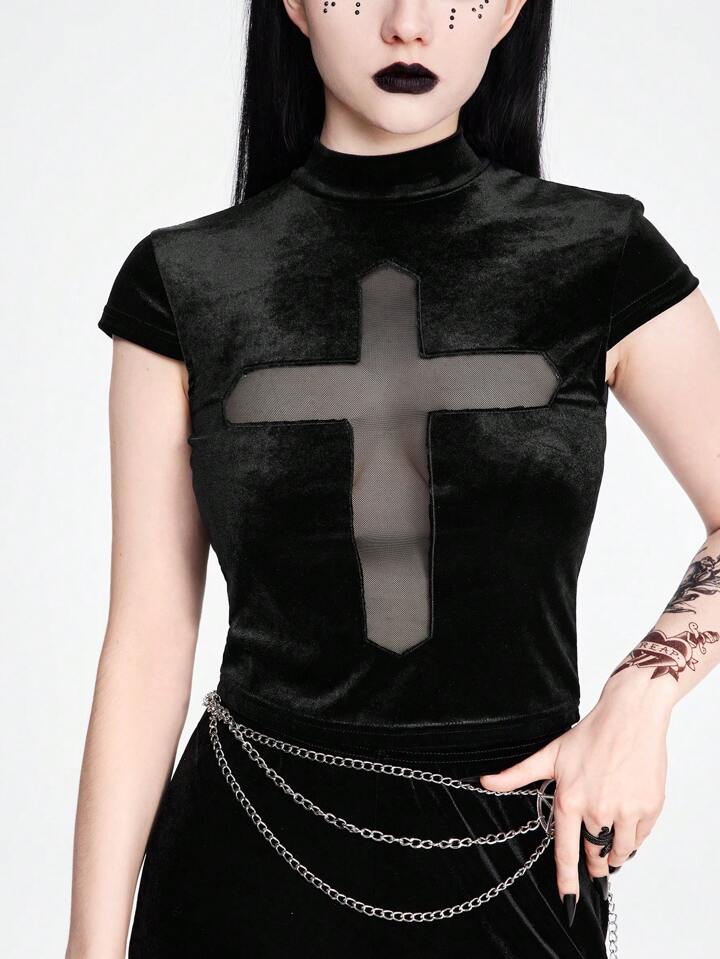 Gothic Vampire Cross Cut-Out Women's Slim-Fit T-Shirt, Black