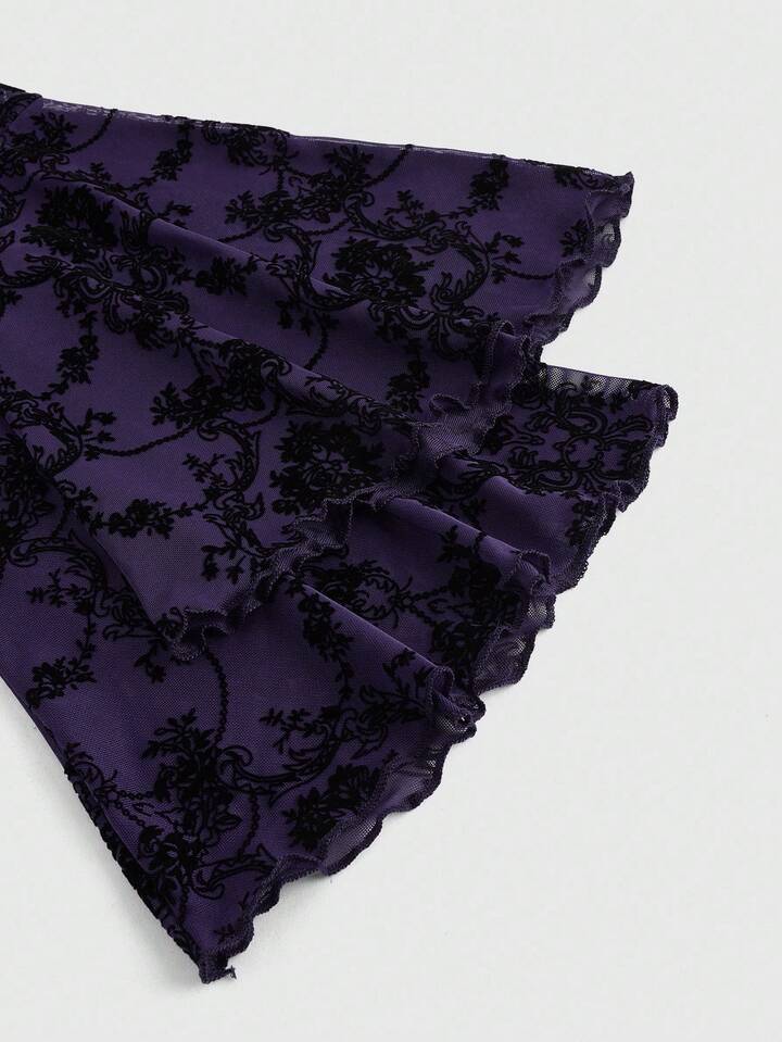 Goth Gothic Versatile Slit Flare Sleeve Women Retro Flocked Floral Cardigan