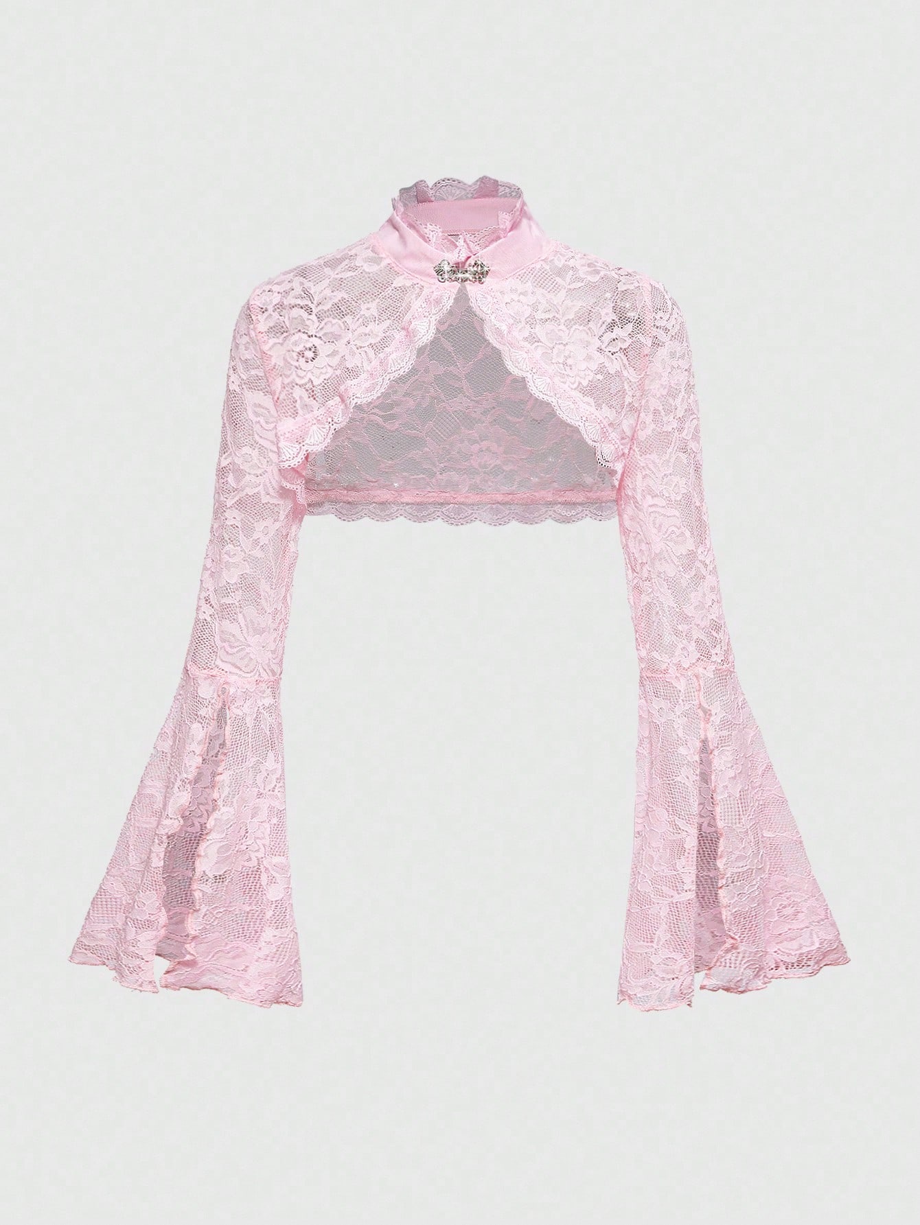 Goth Gothic Versatile Split Flare Sleeve Women Lace Shrug Cardigan
