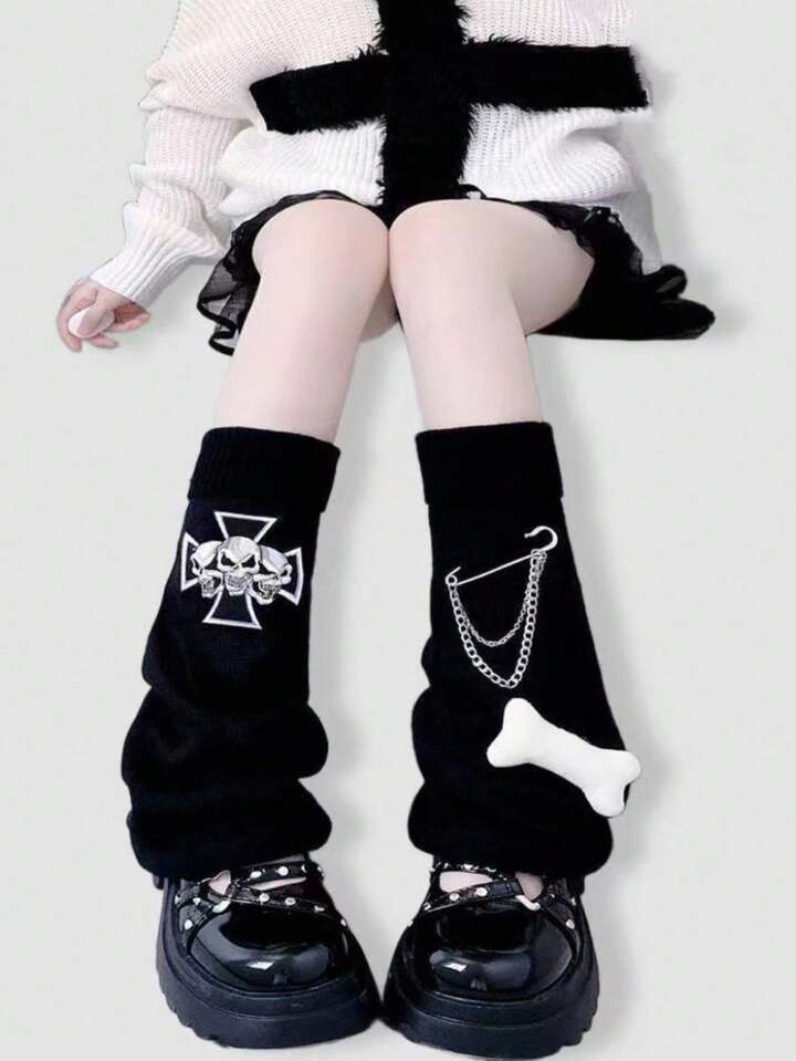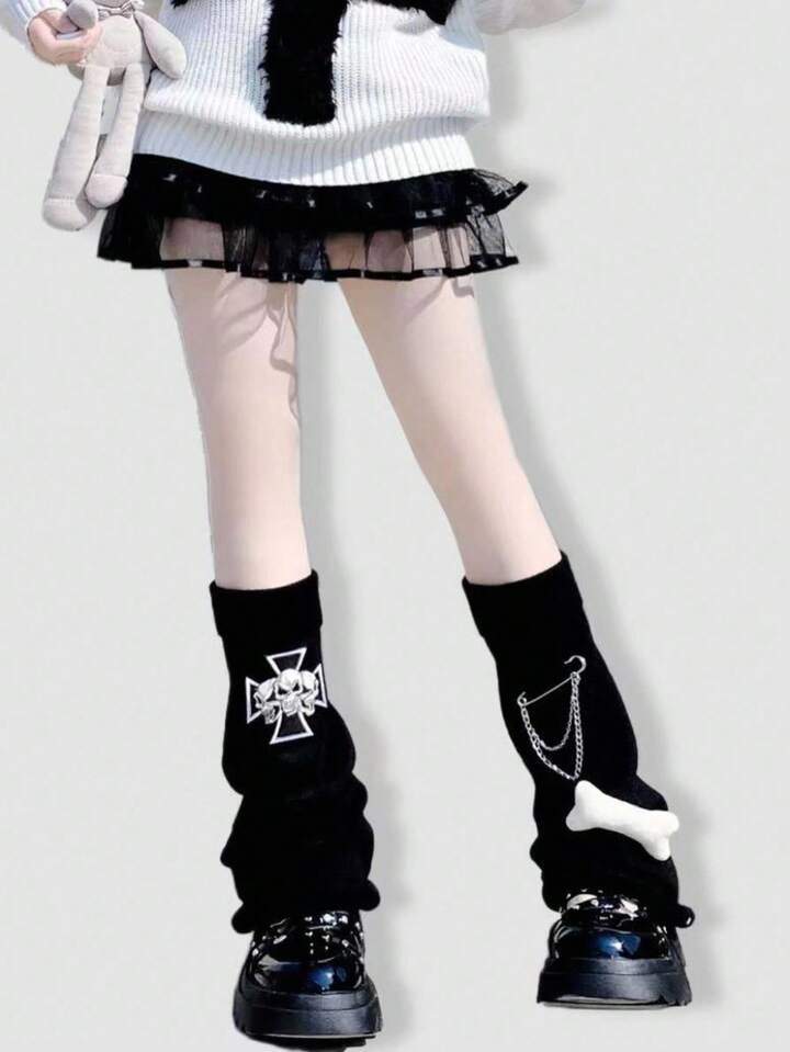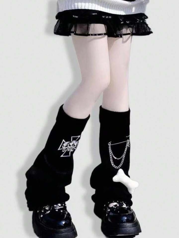 Grunge Punk 1 Pair Black Thigh High Socks, Warm Leg Warmers For Women