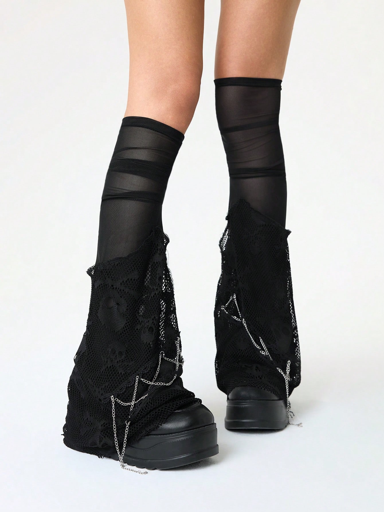 Grunge Punk 1 Pair Chain Decor Sexy Warm Leg Warmers For Women