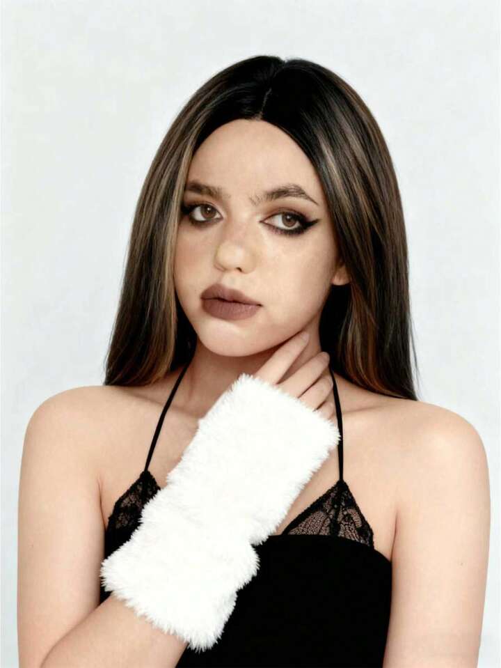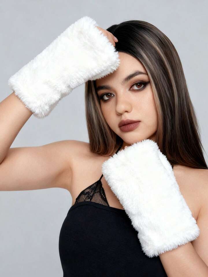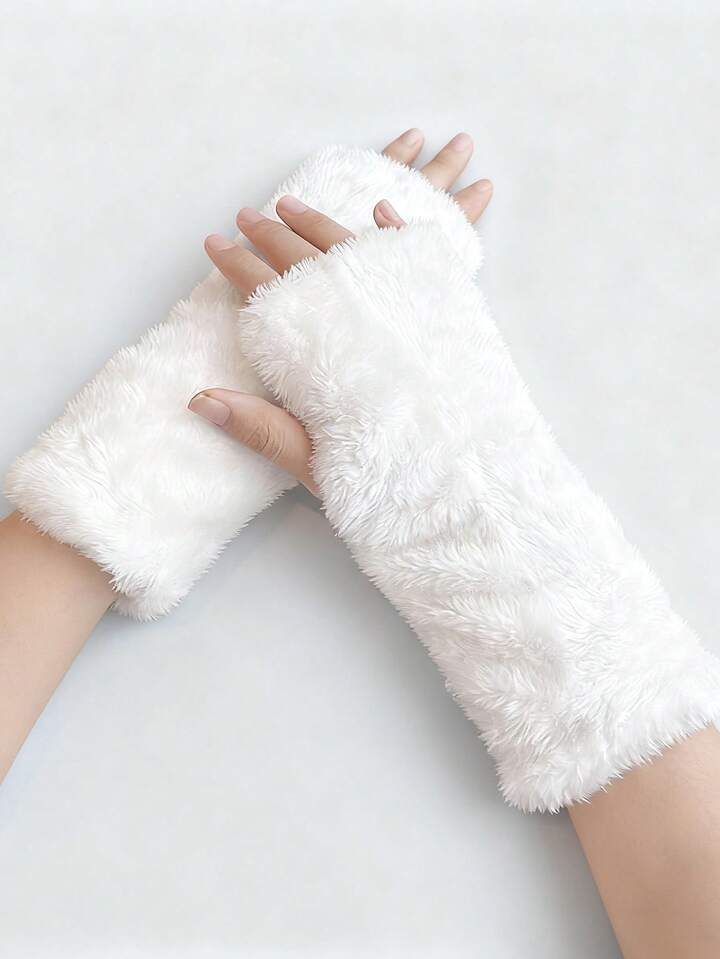 Grunge Punk 1 Pair Punk Style Leopard Print Gloves, Y2K Fuzzy Warm Gloves