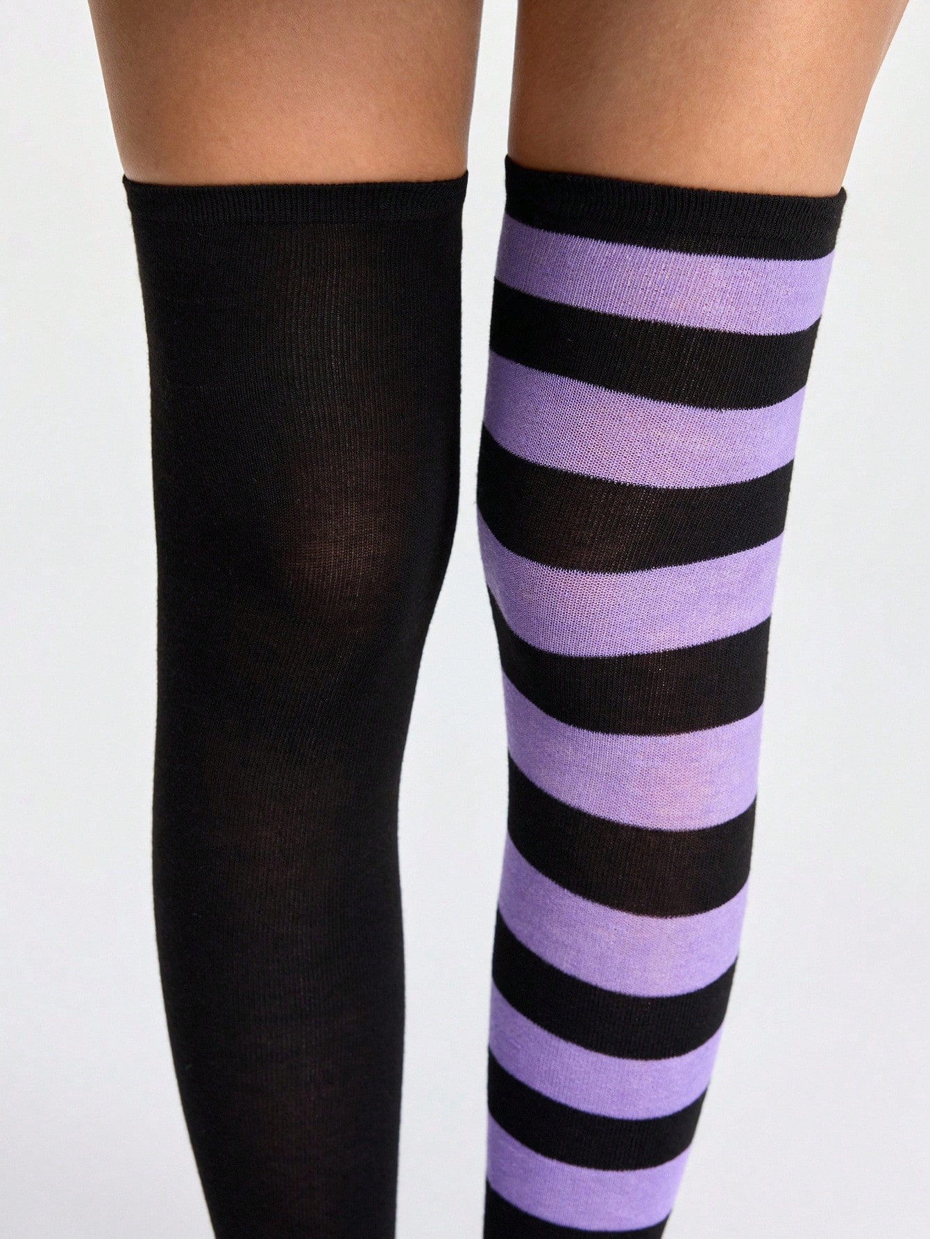Grunge Punk 1 Pair Women's Asymmetric Color High Elasticity Thigh High Socks