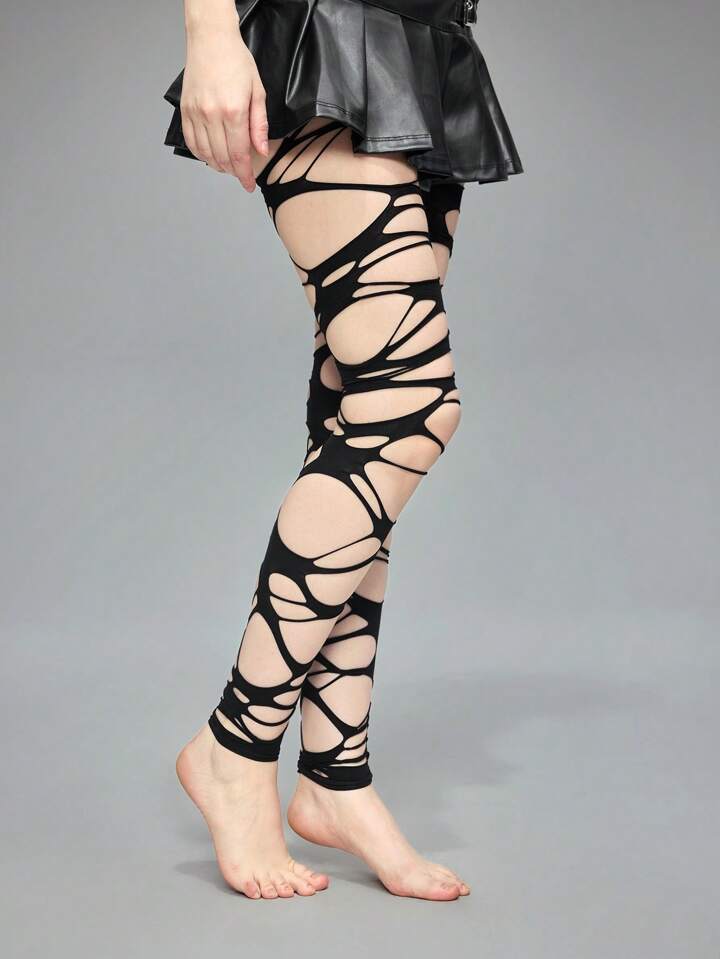 Grunge Punk 1 Set: 1 Pair Minimalist Y2K Dark Aesthetic Fishnet Tights With Holes + 1 Pair Simple Y2K Black Fishnet Socks, Versatile Hosiery Suitable For Daily Wear, Parties And Clubbing