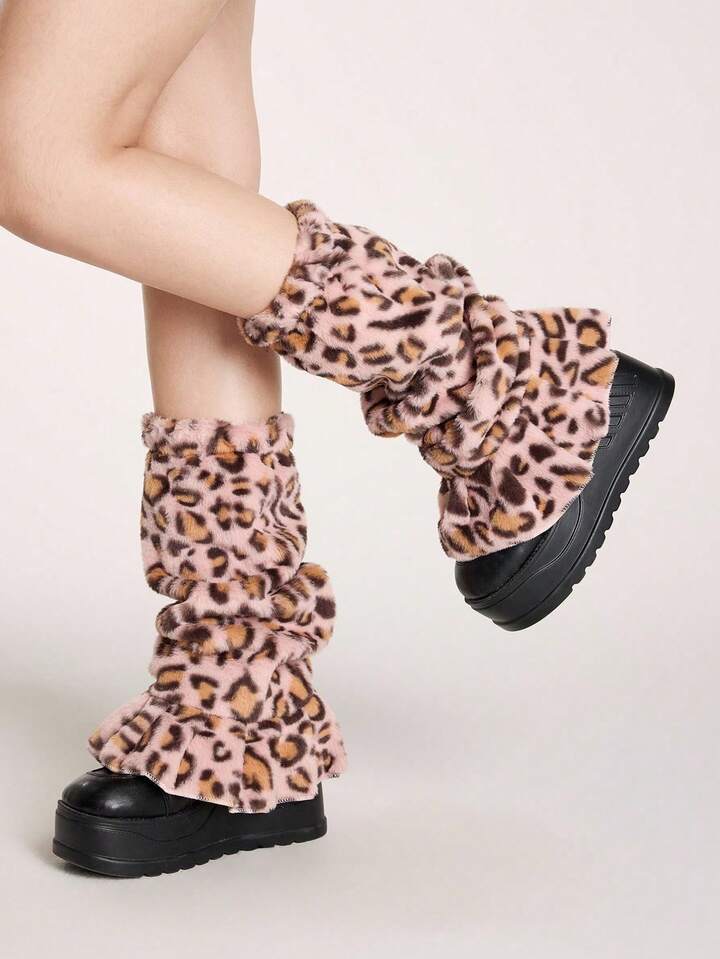 Grunge Punk 1pair Leopard Print Stylish And Warm Leg Warmers For Women