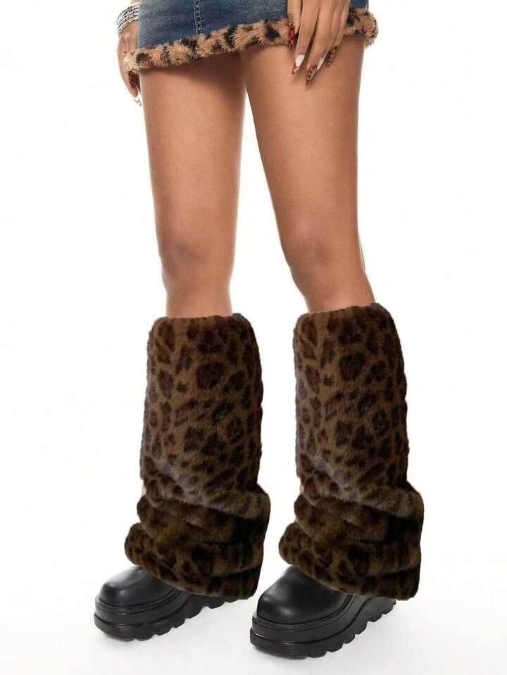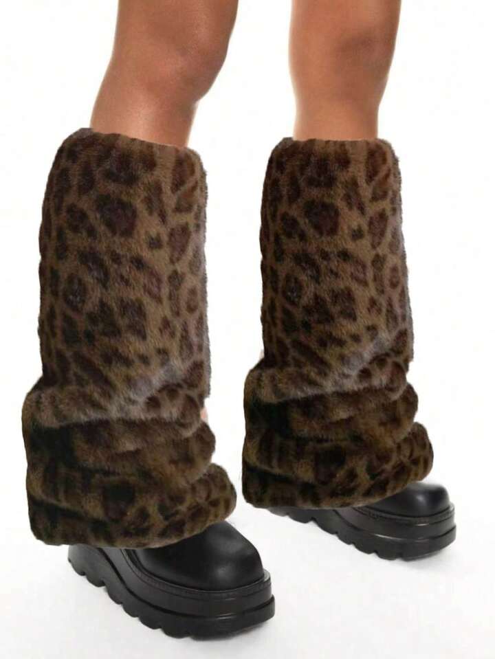 Grunge Punk 1pair Leopard Print Stylish And Warm Leg Warmers For Women