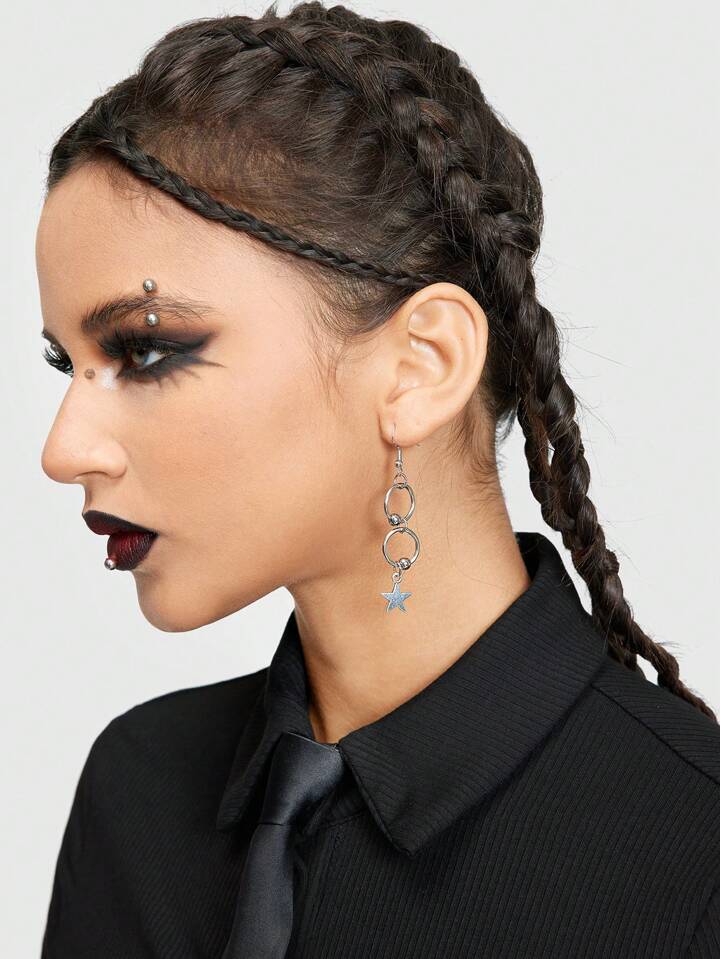 Grunge Punk 1pair Punk Style Horseshoe & Star Dangle Earrings
