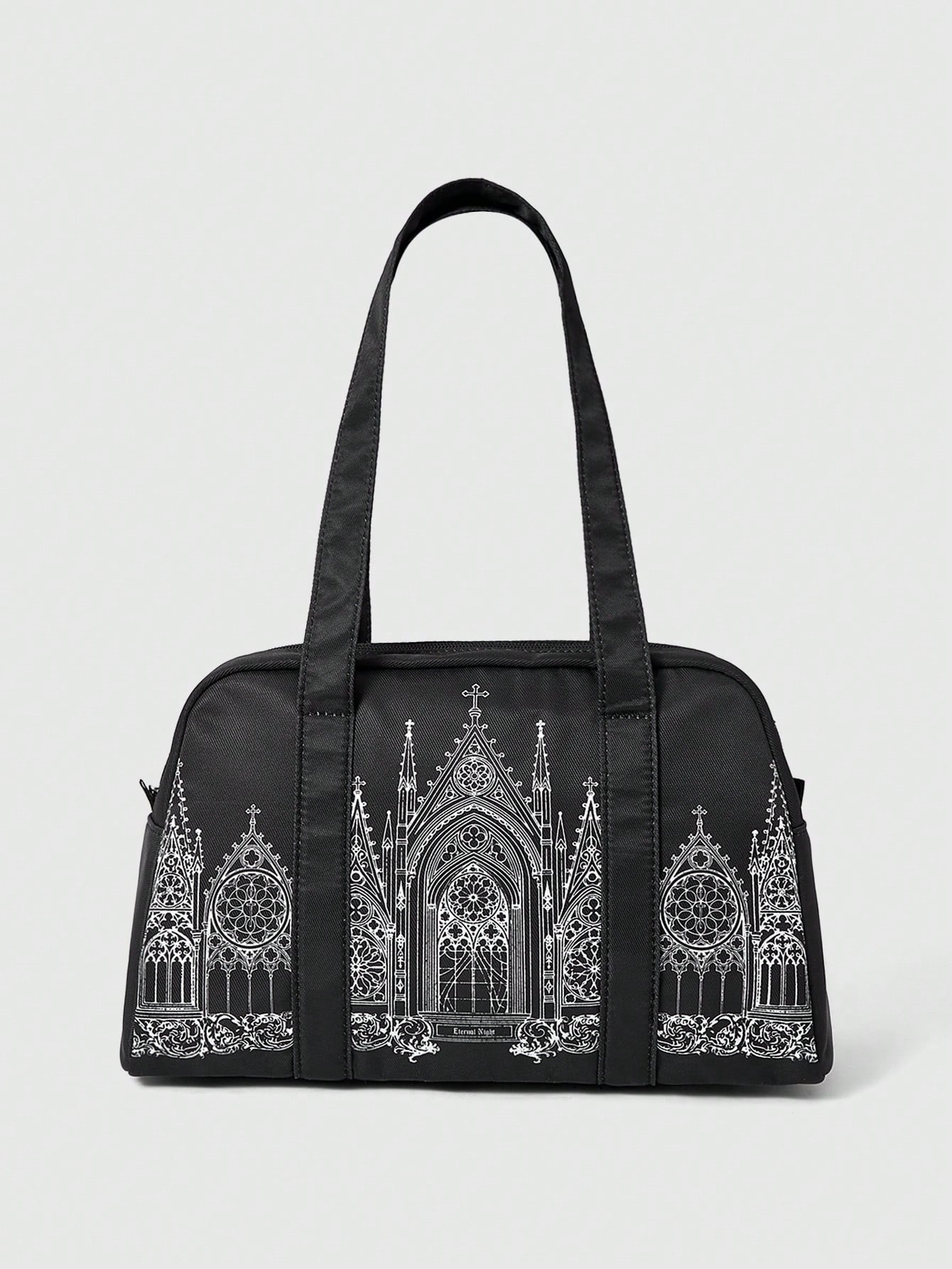 Grunge Punk 1pc Black Corduroy Bat Print Fashion Large Capacity Portable Gothic Style Bow Decor Pendant Women Tote Bag