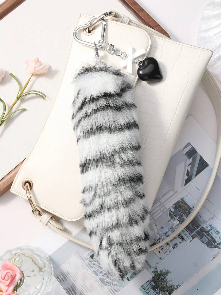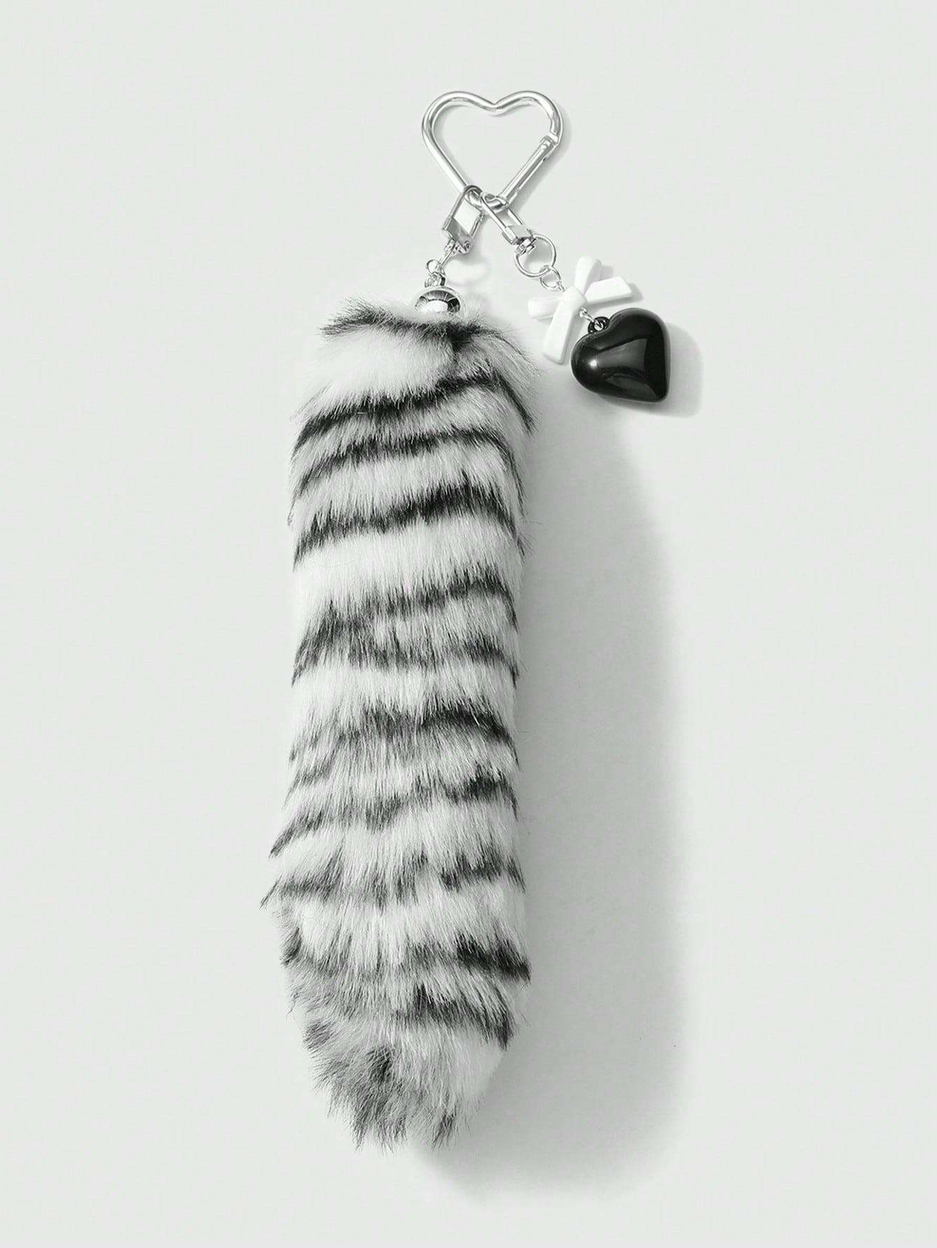 Grunge Punk 1pc Chic Retro Acrylic Bow, Heart, Plush Leopard Tail DIY Keychain Bag Charm, Fashionable High-Quality Gift For Women, Girls, Daily Wear, Holidays