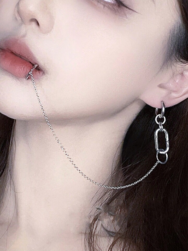 Grunge Punk 1pc Cool & Stylish Personalized Clip-On Earring And Lip Ring Combo For Women, No Piercing Required