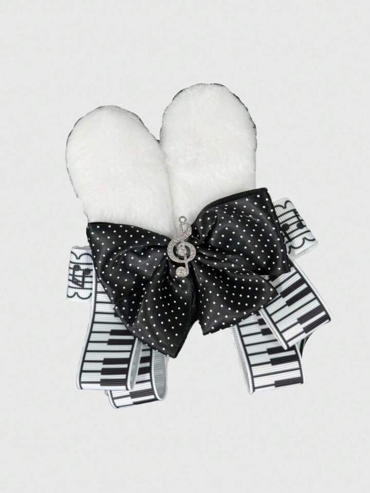 Grunge Punk 1pc Cute & Sweet Bow, Piano Print, Polka Dot Rabbit Ear Hair Clip, Can Be Clipped On Hair Or Bags, Suitable For Music Festivals, Shopping, School, Kawaii & Elegant Anime Style Hair Accessory