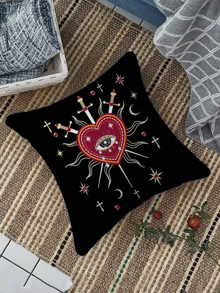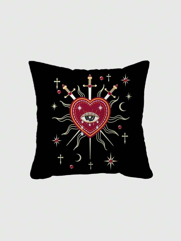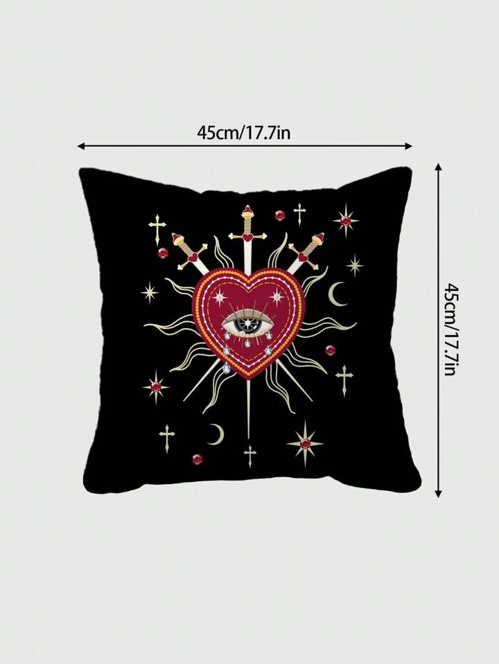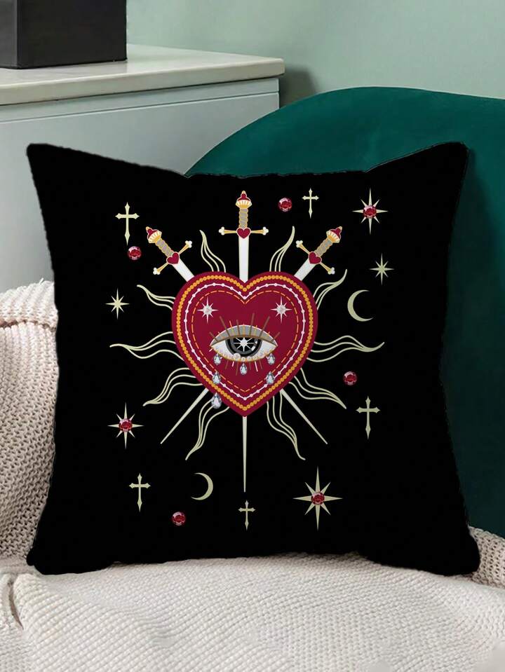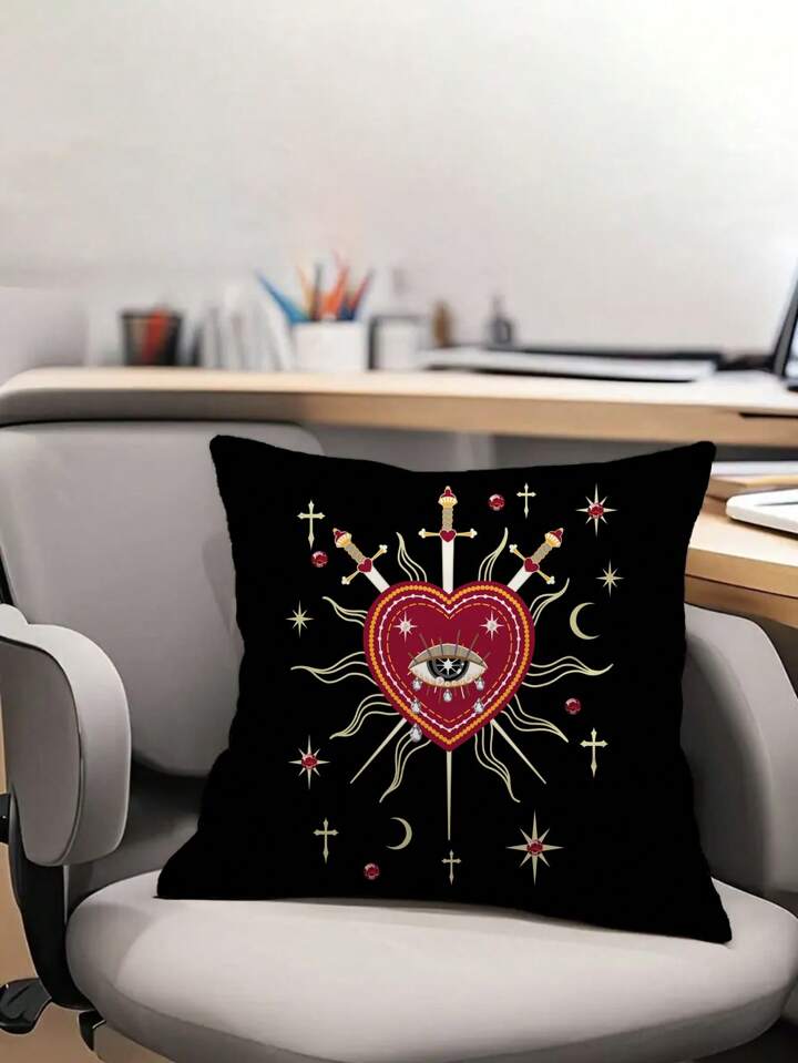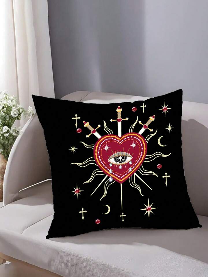 Grunge Punk 1pc Double-Sided Heart Design Throw Pillow Cover, Suitable For Living Room, Bedroom, Dining Room