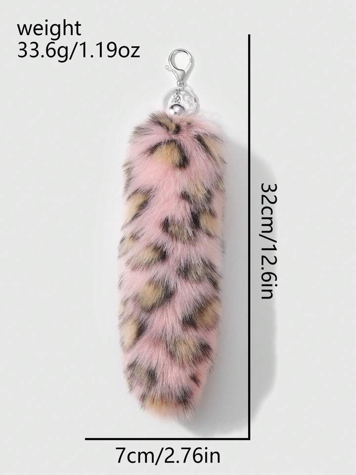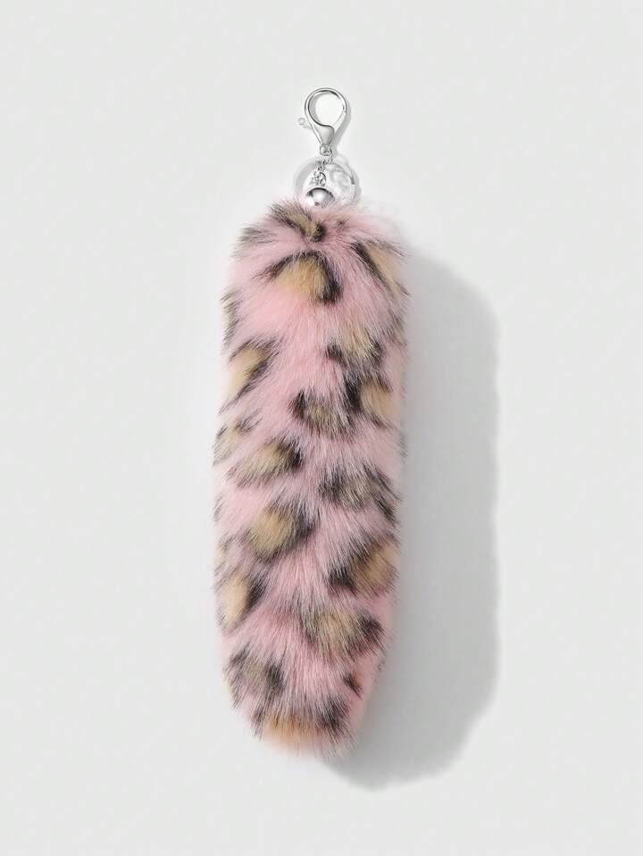 Grunge Punk 1pc Fashionable Luxury Leopard Print Fluffy Faux Fur Animal Tail Keychain, DIY Bag Charm, Stylish High-Quality Pink Design, Suitable For Women Daily Use Or As Gift