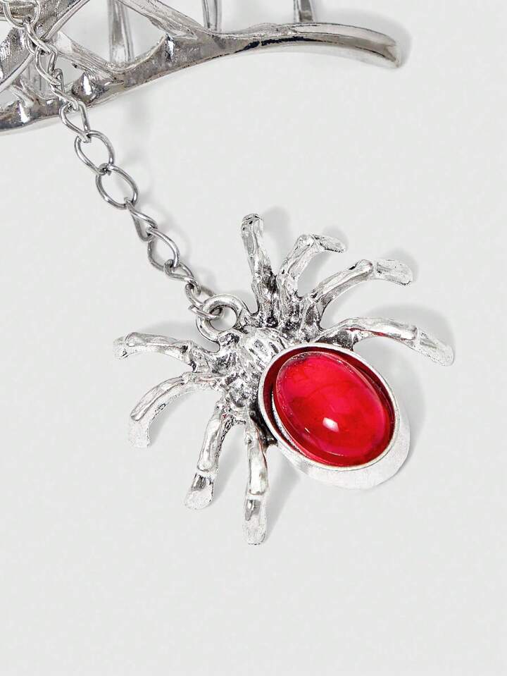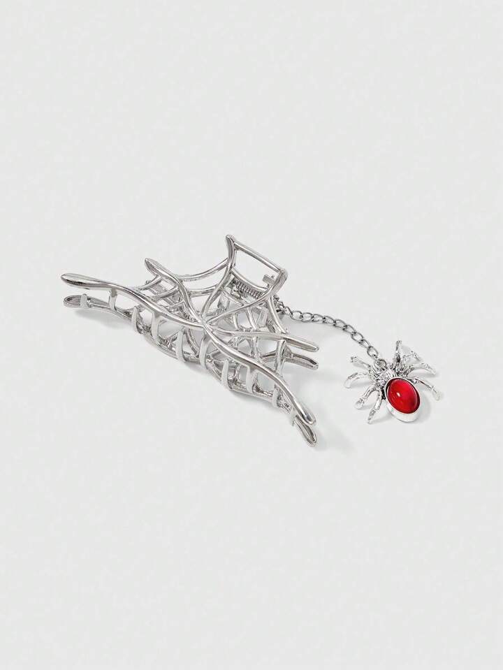 Grunge Punk 1pc Gothic Punk Style Spider Web Hair Clip For Halloween, 1pc Rhinestone Spider Design Hair Clip, Fashionable & Hair Accessories