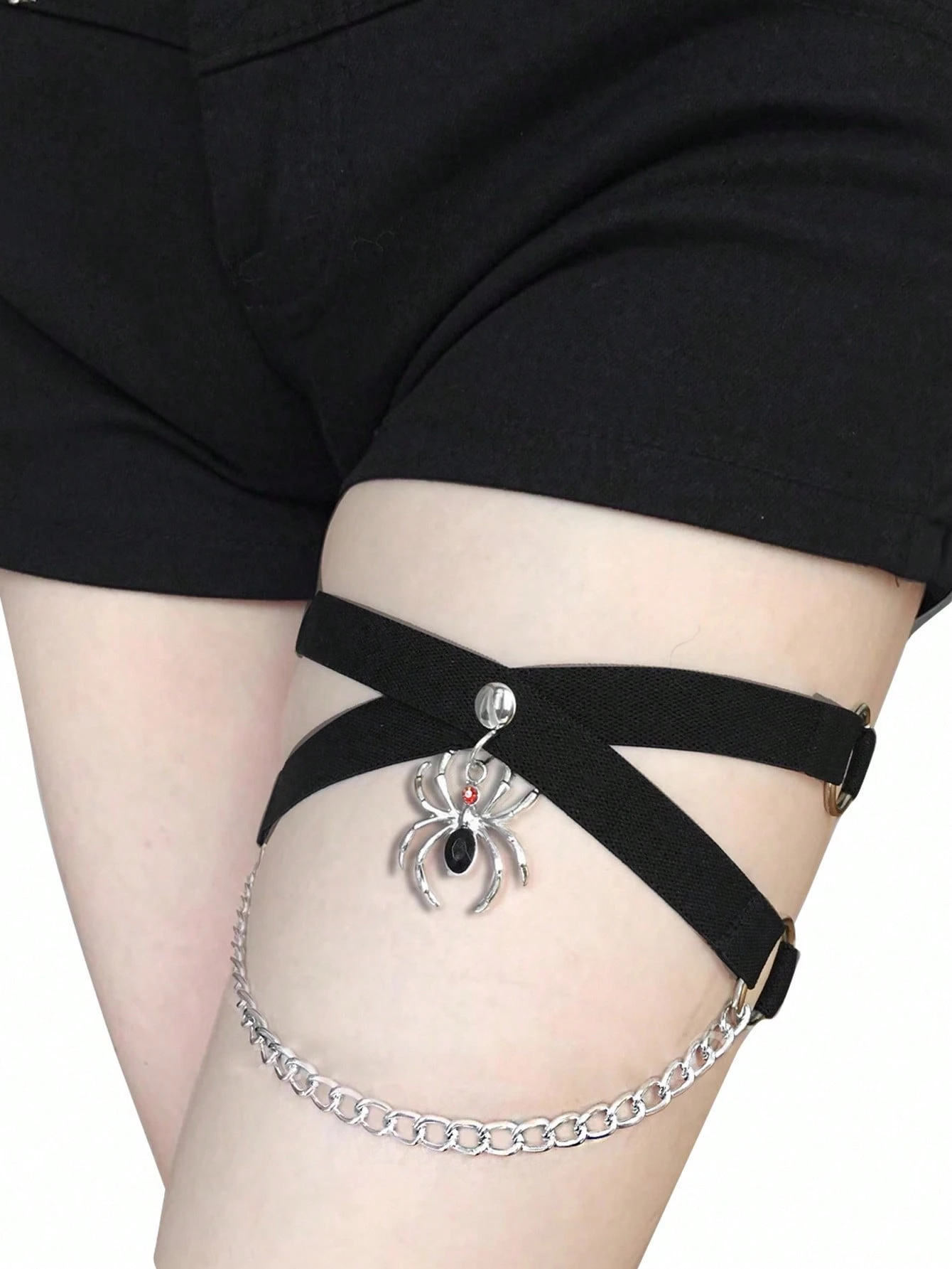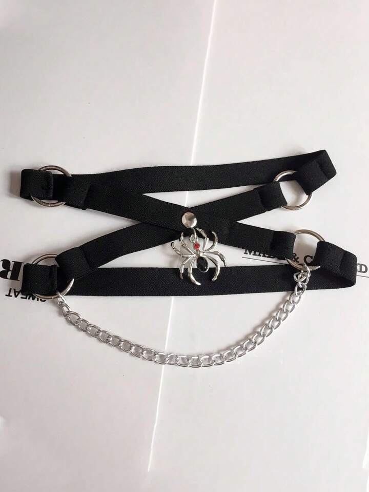 Grunge Punk 1pc Gothic Subculture Spider Chain Leg Harness, Elastic Criss-Cross Leg Strap, Baddie Sweet Punk Niche Leg Chain Accessory, Halloween