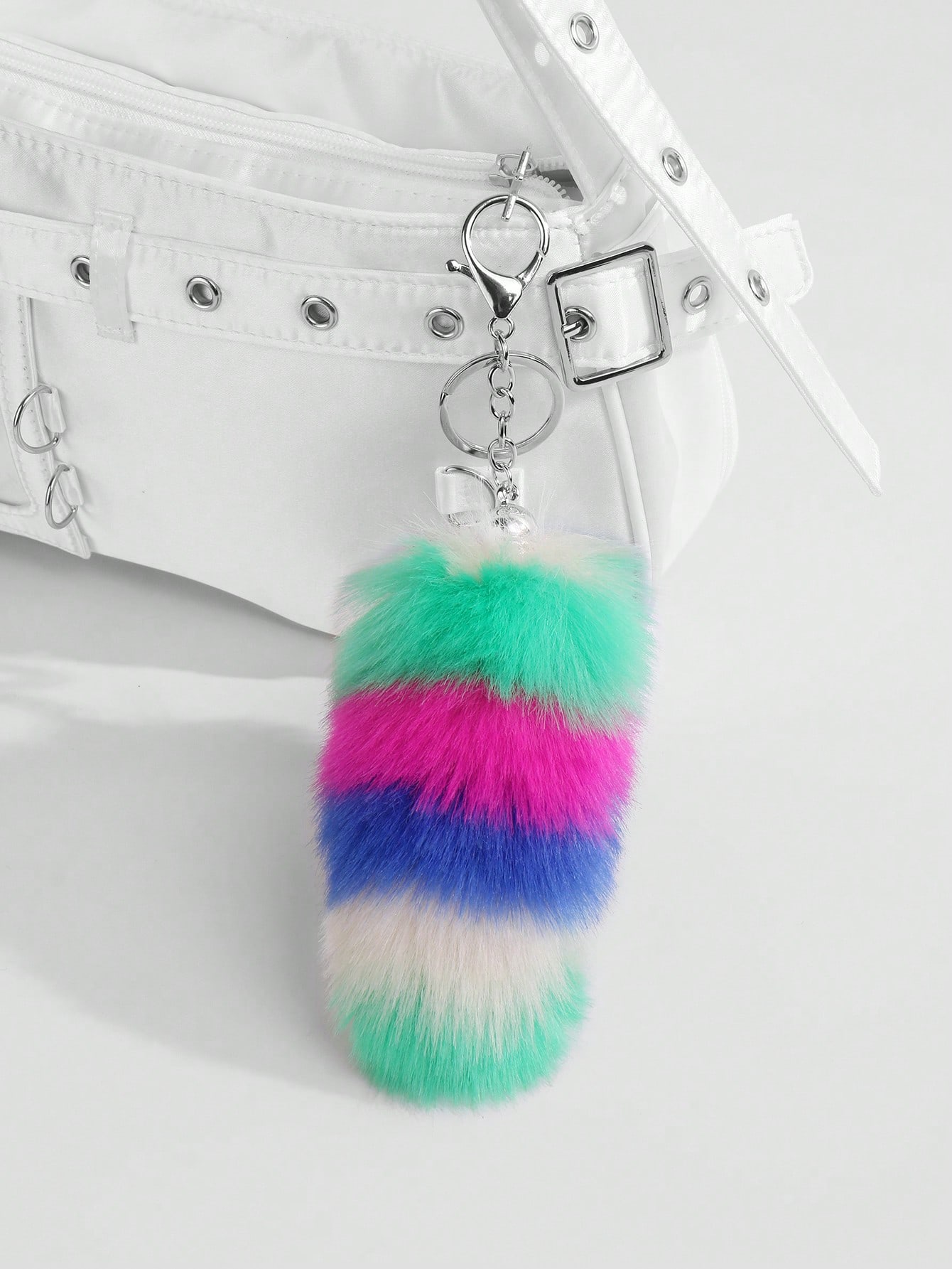 Grunge Punk 1pc INS Kawaii Exquisite Fashion Vintage High-Quality Multi-Color Plush Faux Animal Tail Mini DIY Keychain Bag Charm, Suitable For Women, Daily Wear, Holiday Gift