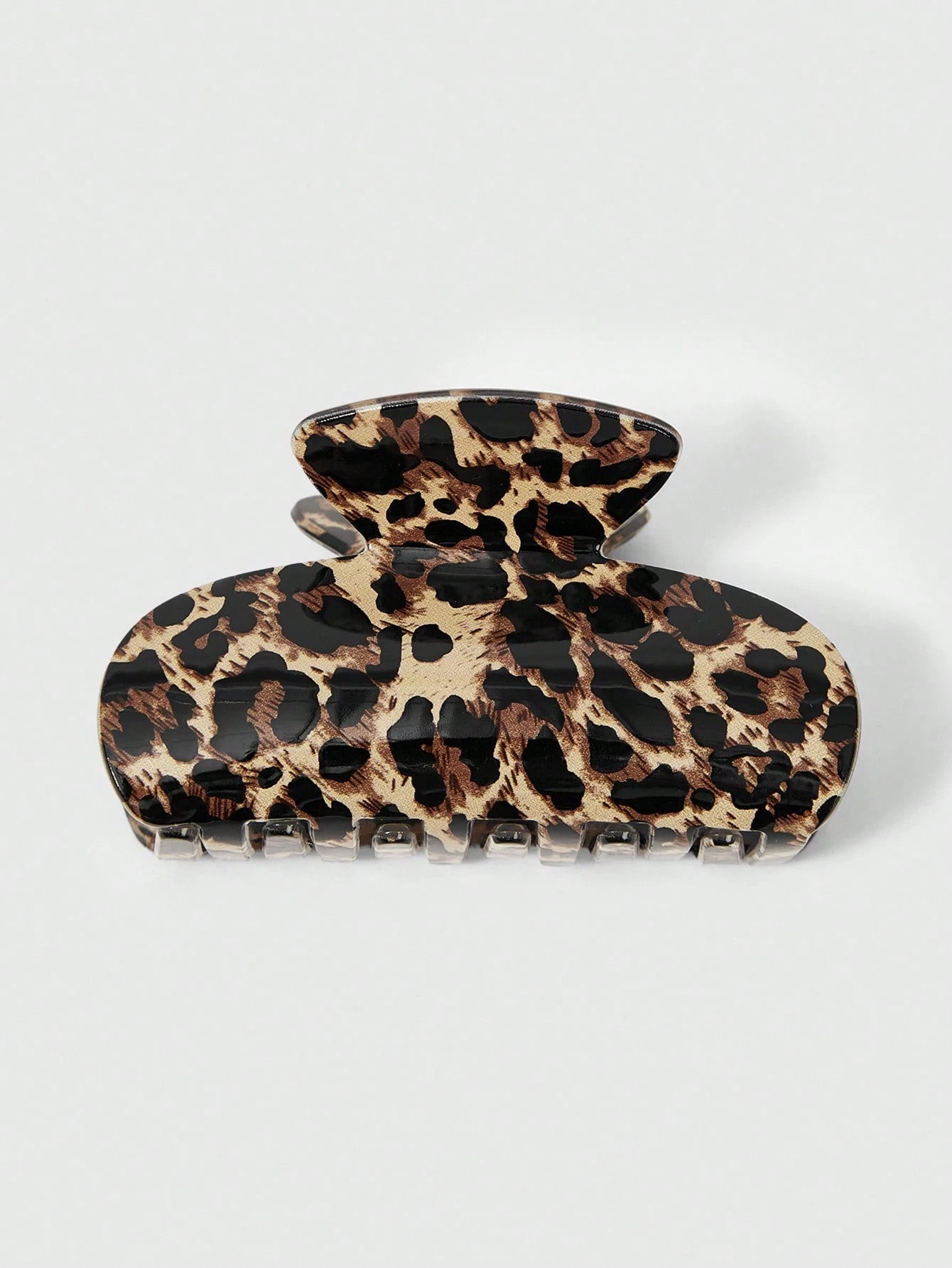 Grunge Punk 1pc Leopard Print Hair Clip, Elegant Hair Claw Clip For Women
