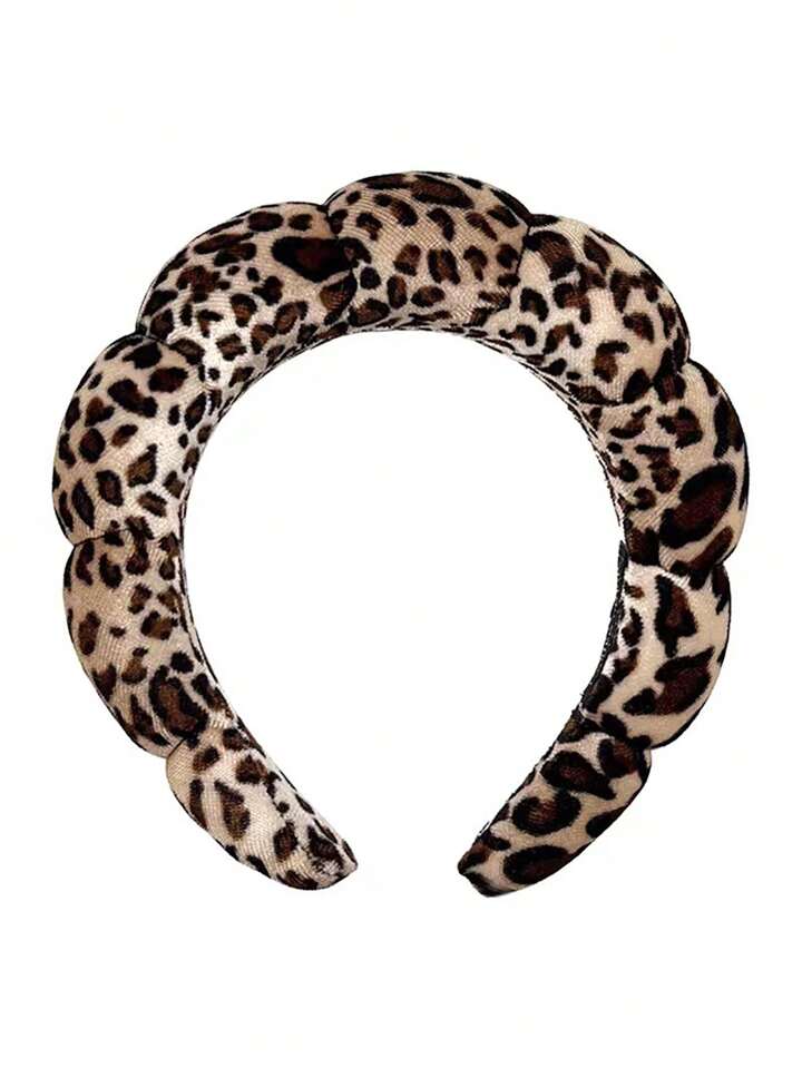 Grunge Punk 1pc Leopard Print Twisted Cloud Sponge Hairband High Headband For Women's Makeup, Face Washing And Hair Accessories
