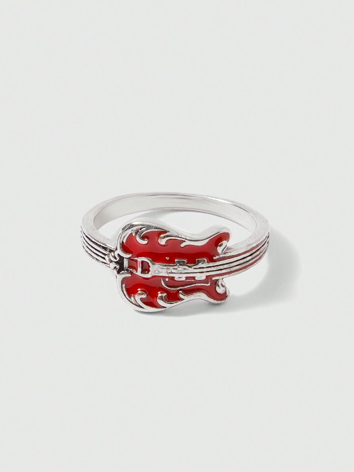 Grunge Punk 1pc Punk Gothic Style Red Oil Drop Guitar Shaped Ring
