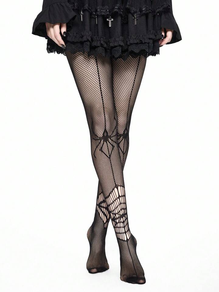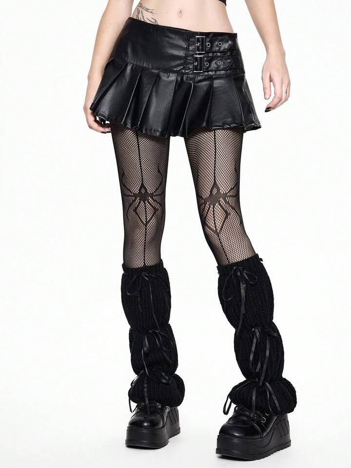 Grunge Punk 1pc Punk Rock Style Spider Web Pattern Stockings + 1 Pair Solid Black Knitted Leg Warmers, Y2K Baddie Outfit Set Suitable For Casual Street Looks