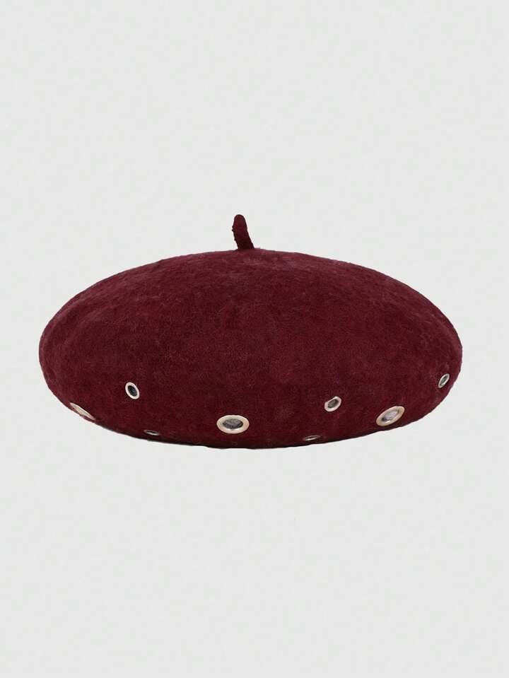 Grunge Punk 1pc Punk Style Circular Hollow Rivet Beret Hat, Y2K Round Pendant Newsboy Cap, Daily Personalized Fashion Item