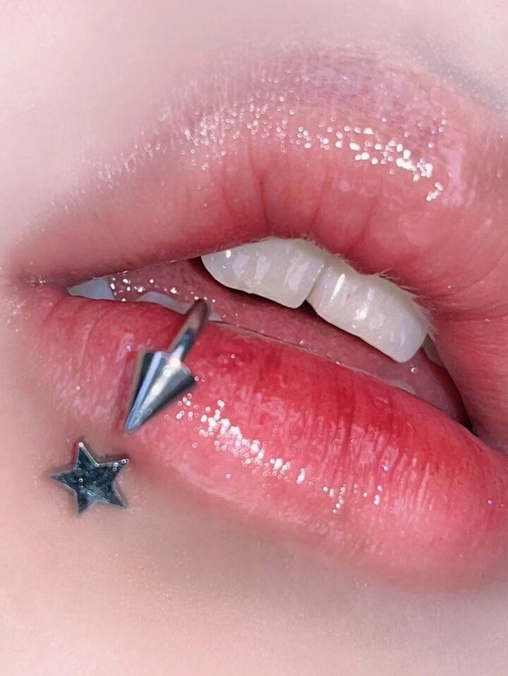 Grunge Punk 1pc Punk Style Cone Stud & Five-Pointed Star Design Labret Lip Ring