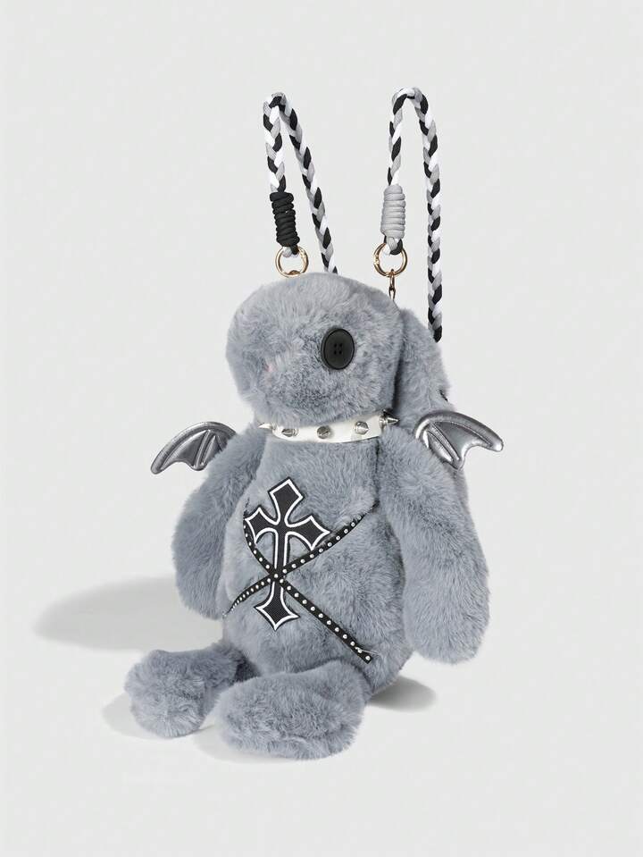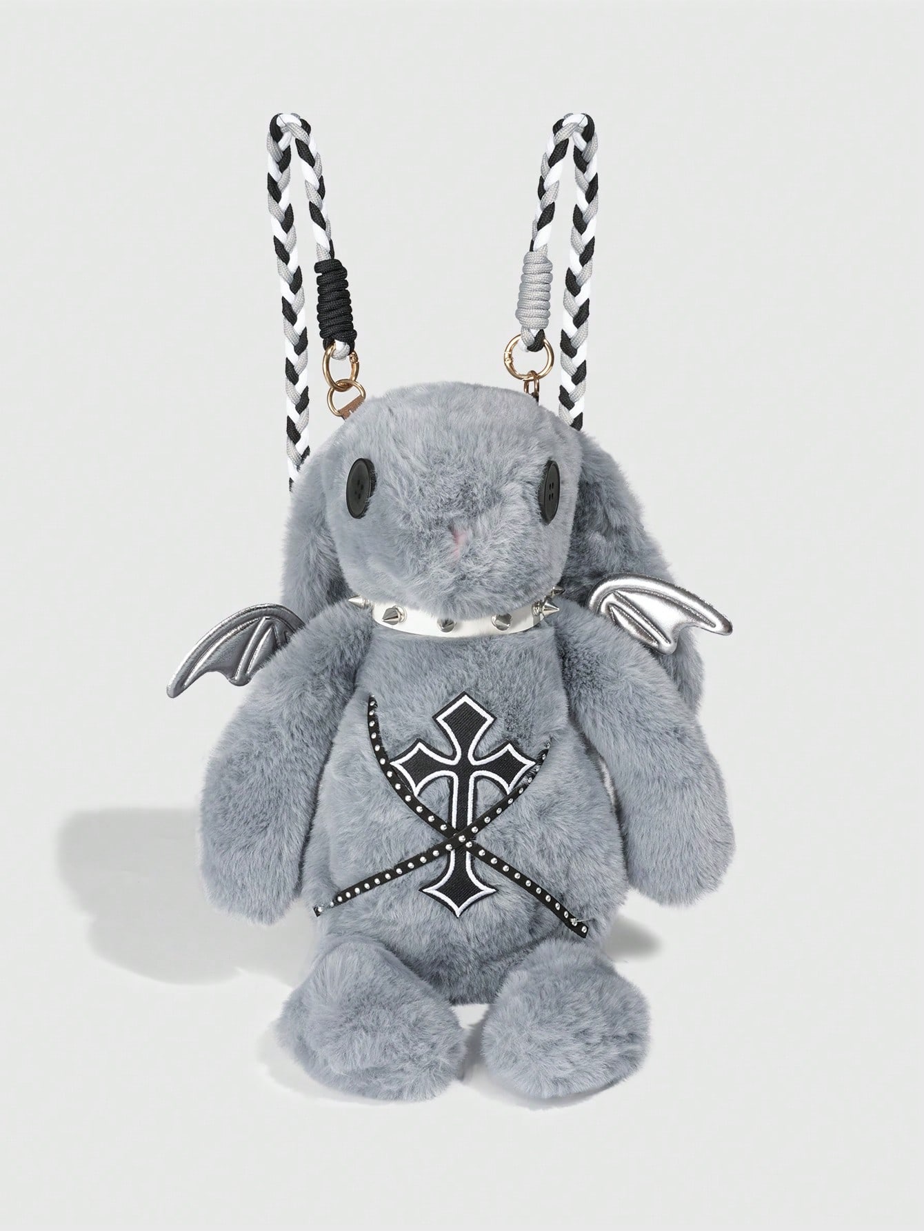 Grunge Punk 1pc Punk-Style Dark Cross Rabbit Backpack, A Student Halloween Crossbody Bag, A Punk Rivet Necklace Decoration Doll Bag, Suitable For Daily Travel, And Birthday Gifts
