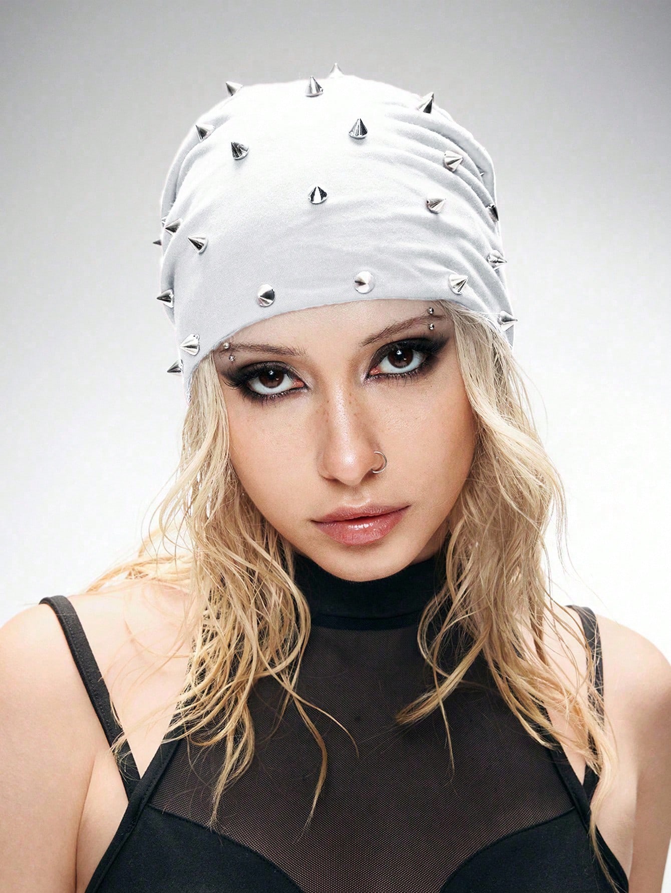 Grunge Punk 1pc Punk Style Studded Thin Bucket Hat, High-Quality Y2K Vintage Solid White Beanie, Fashionable Everyday Wear Versatile Hat For All Seasons