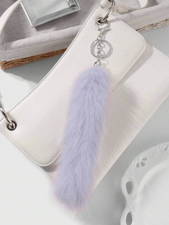 Grunge Punk 1pc Vintage Chic Luxurious Versatile High-Quality Purple Faux Fur Sparkling Animal Tail Key Chain & Key Ring, Accessory For Women, Ideal Gift