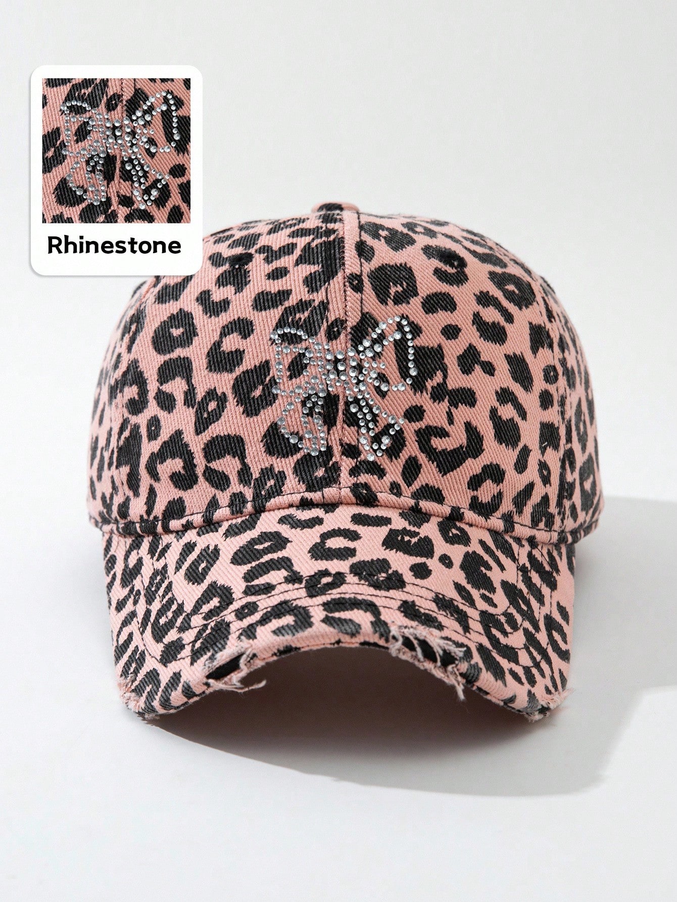 Grunge Punk 1pc Women's Bow Leopard Print Rhinestone Baseball Cap