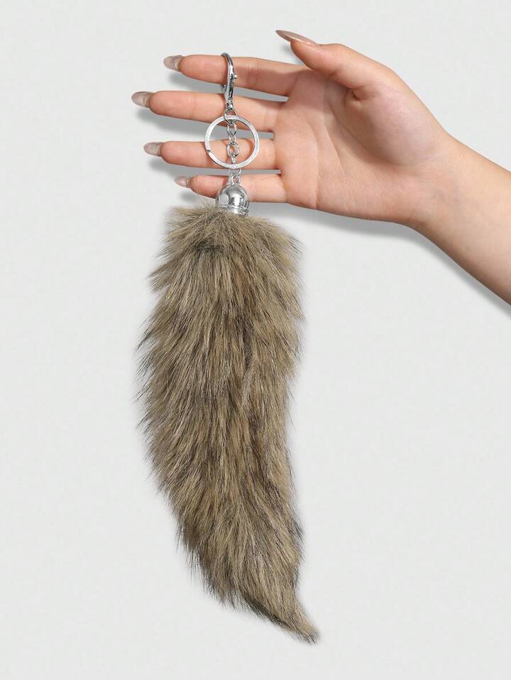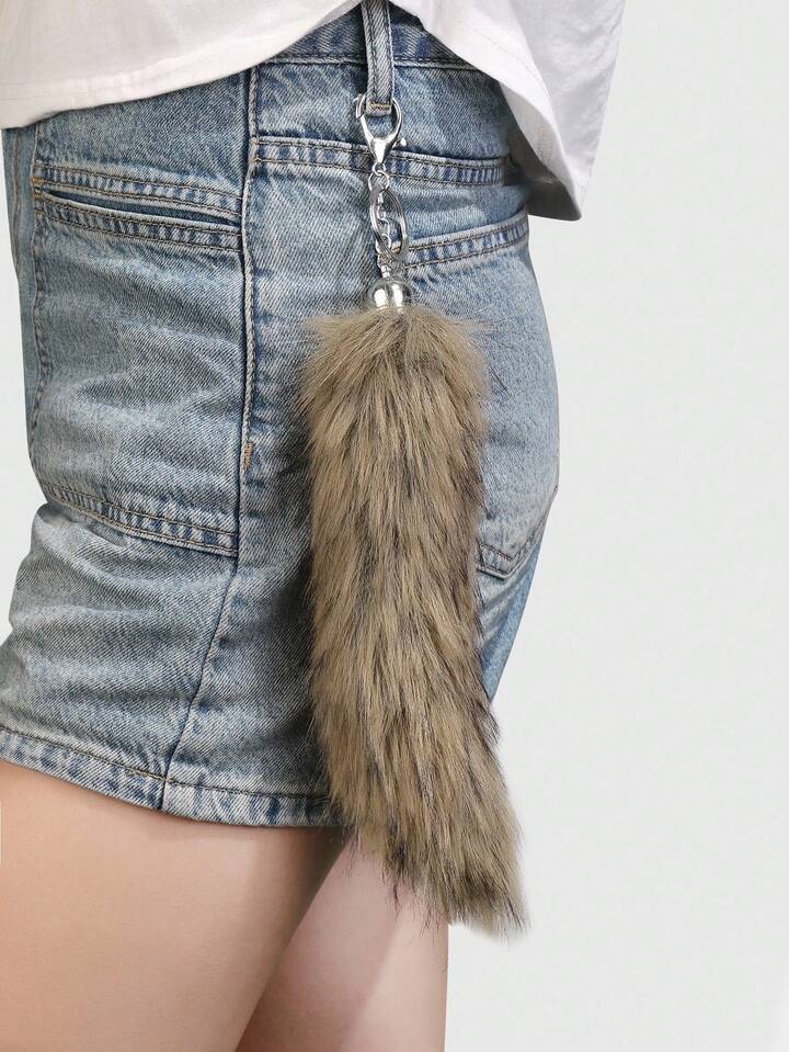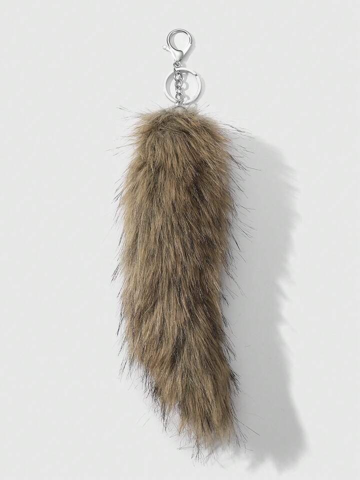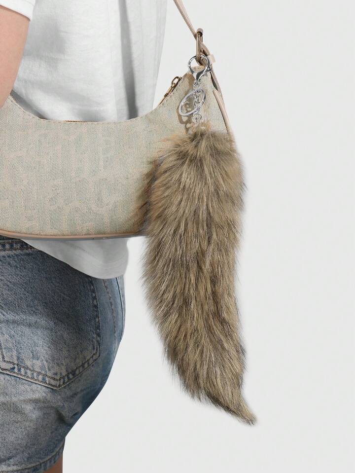 Grunge Punk 1pc Y2K Retro Cute Personalized Versatile High-Quality Brown Ombre Faux Fur Fox Tail DIY Keychain Bag Charm, Suitable For Women/Girls Daily Wear, Holiday Gift