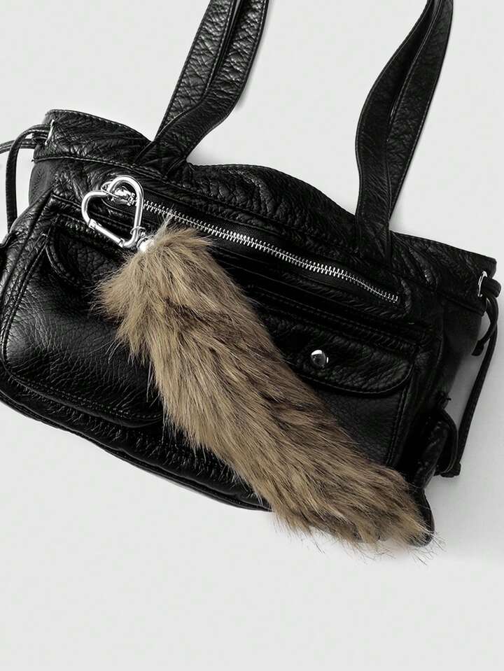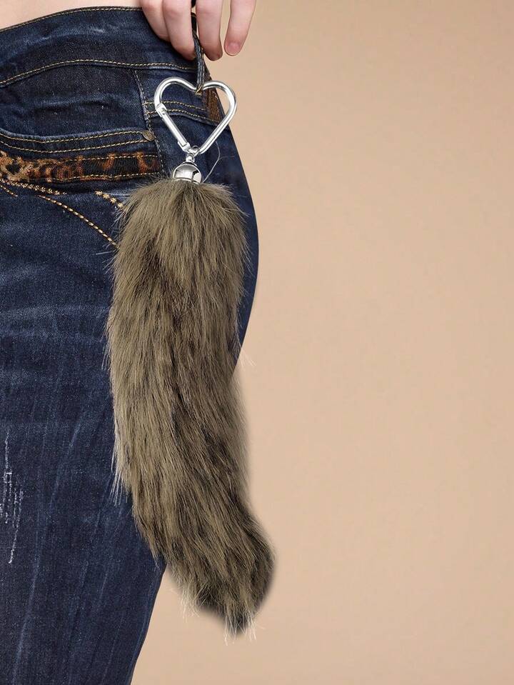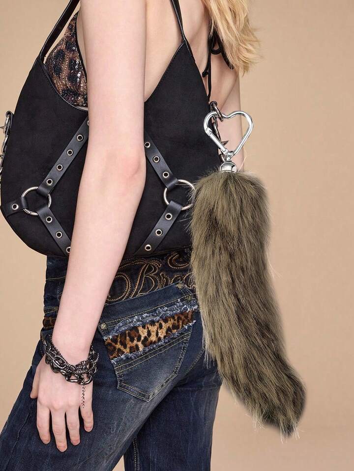 Grunge Punk 1pc Y2K Retro Cute Personalized Versatile High-Quality Brown Ombre Faux Fur Fox Tail DIY Keychain Bag Charm, Suitable For Women/Girls Daily Wear, Holiday Gift