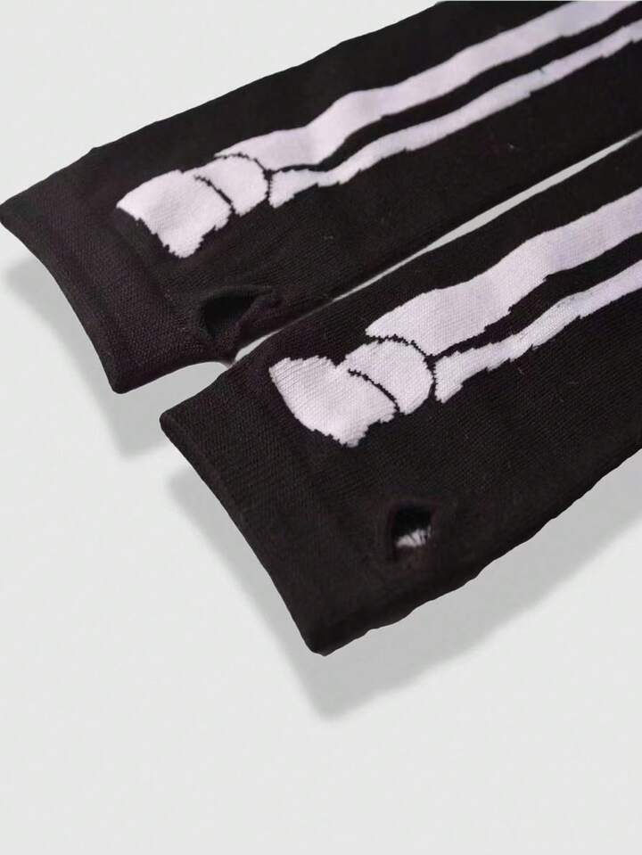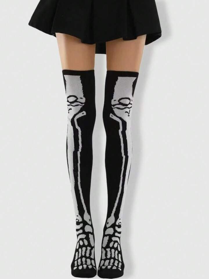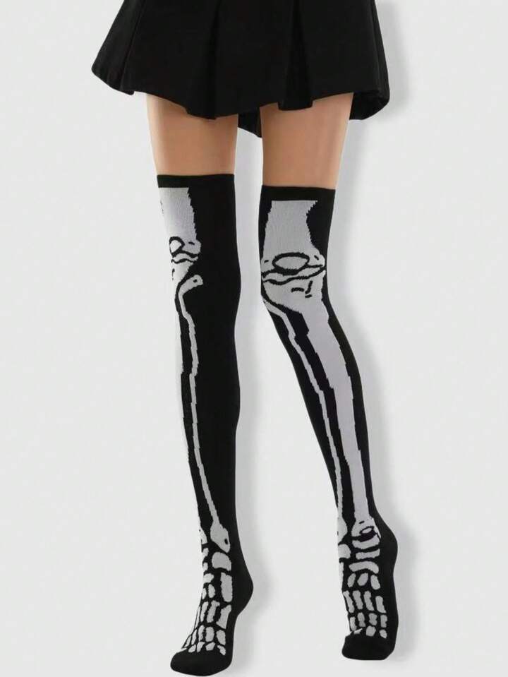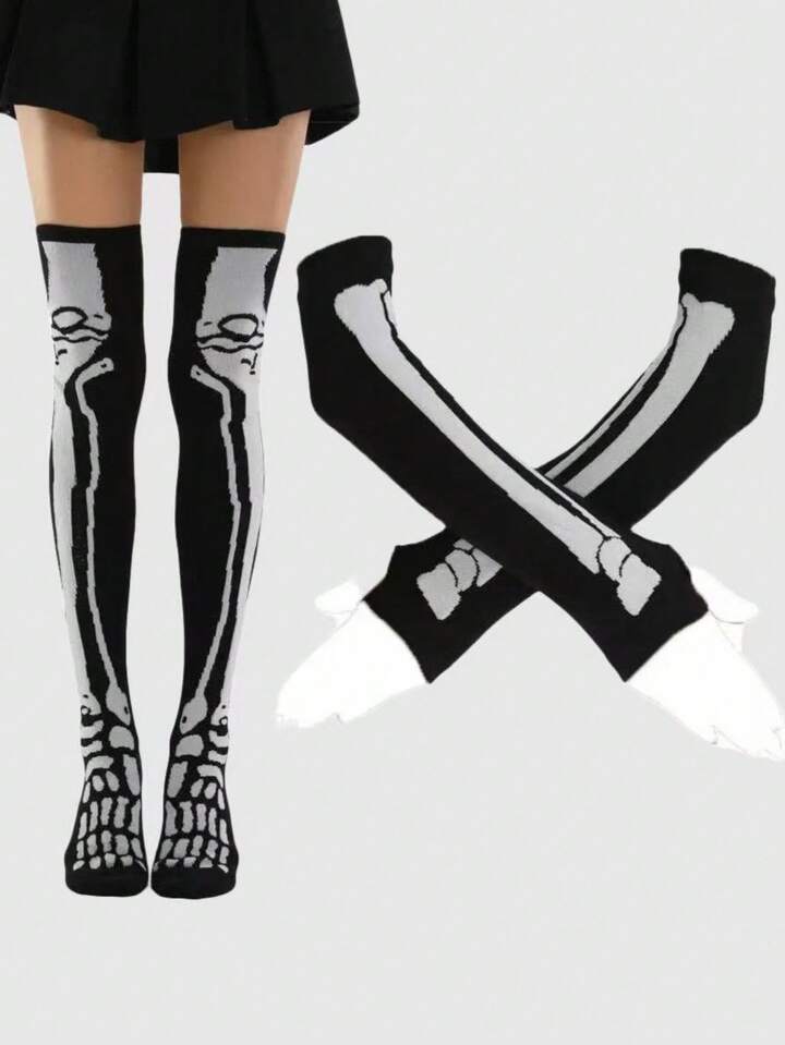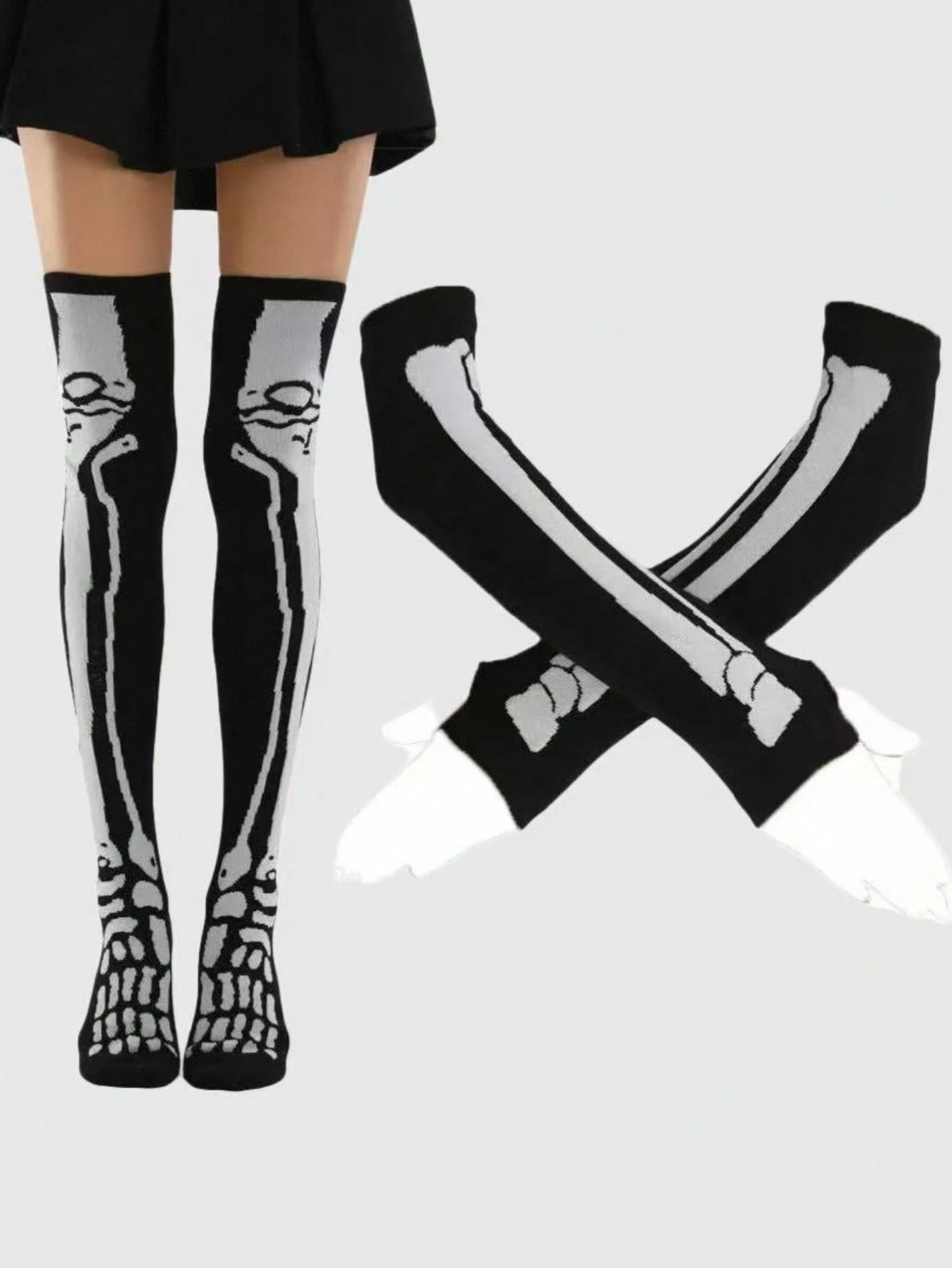 Grunge Punk 2 Pairs Halloween Thigh High Socks With Gloves Set, Retro Streetwear Over-The-Knee Socks For Women