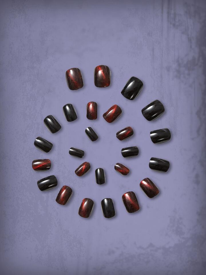 Grunge Punk 24pcs Short Oval Color Block Fake Nail