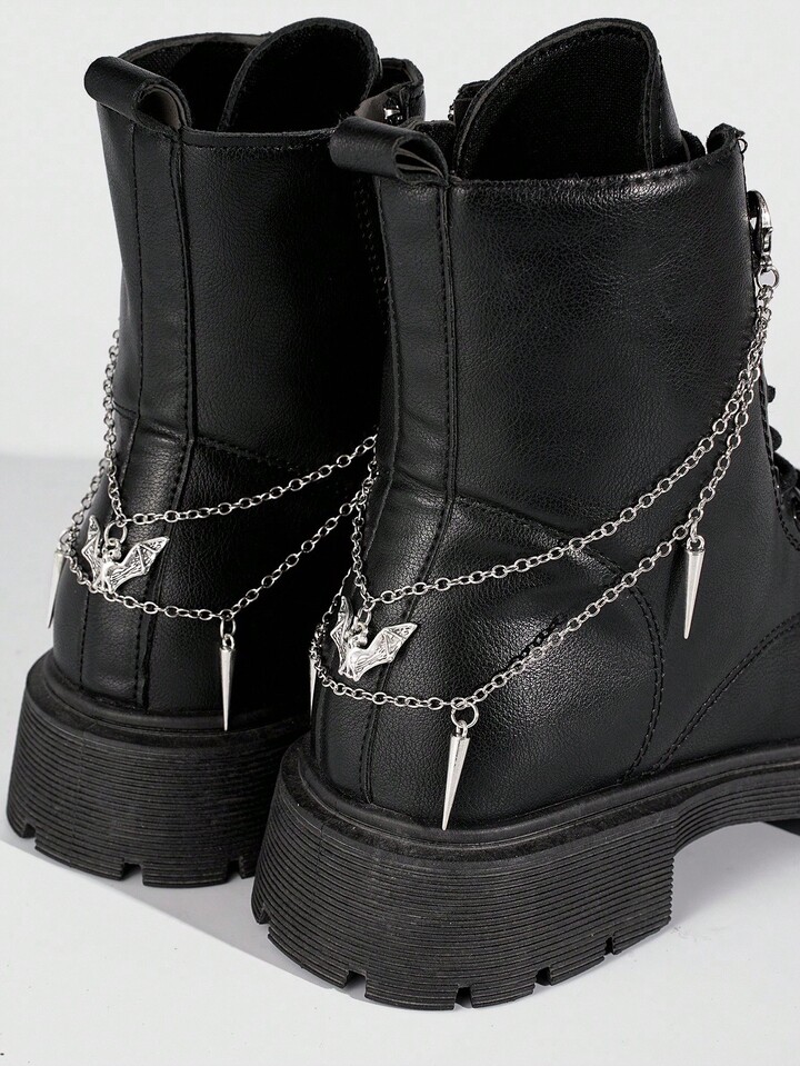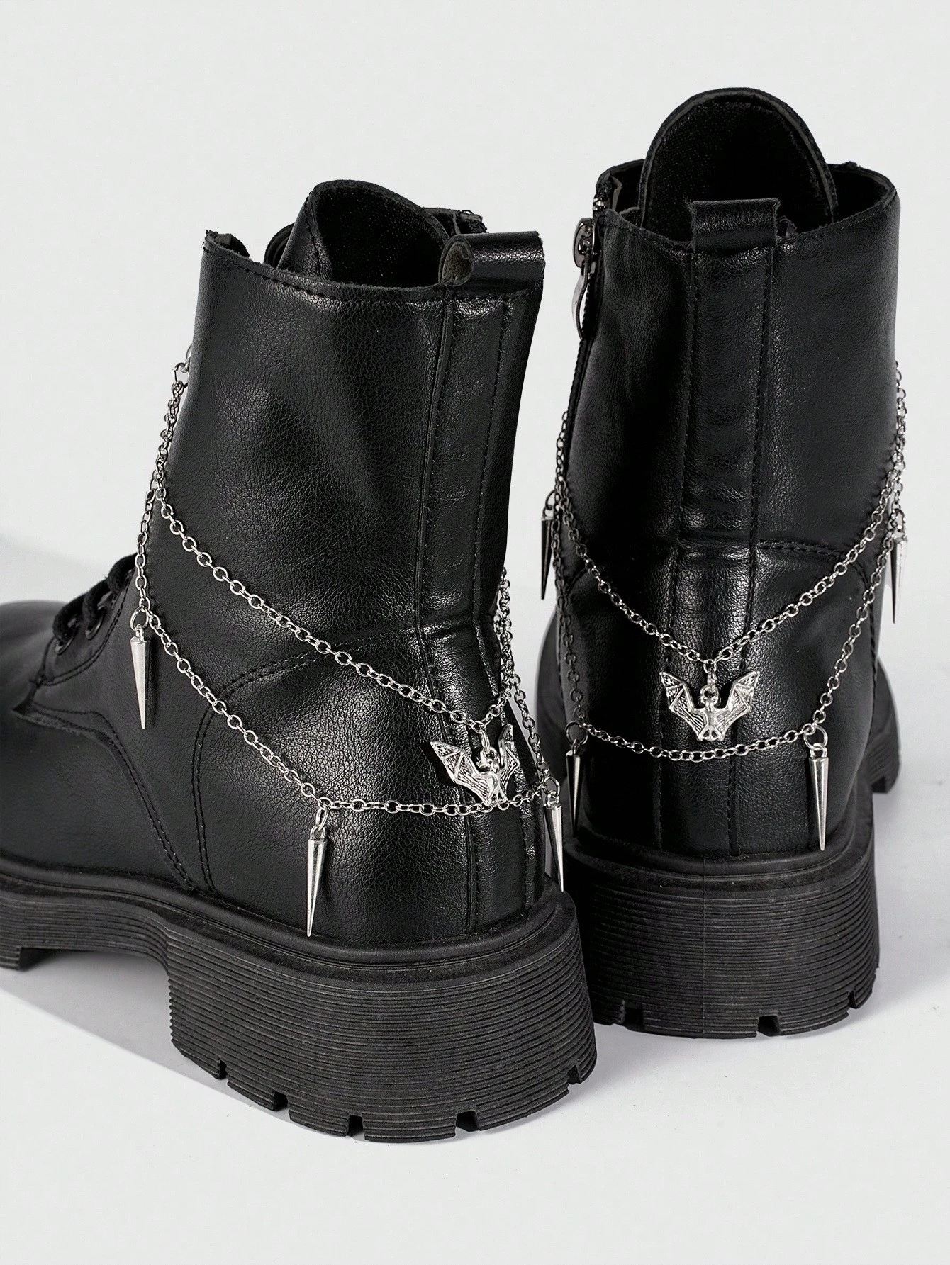Grunge Punk 2pcs Gothic Halloween Atmosphere Bat & Cone Shoe Decor, DIY Shoe & Boot Decorative Chain