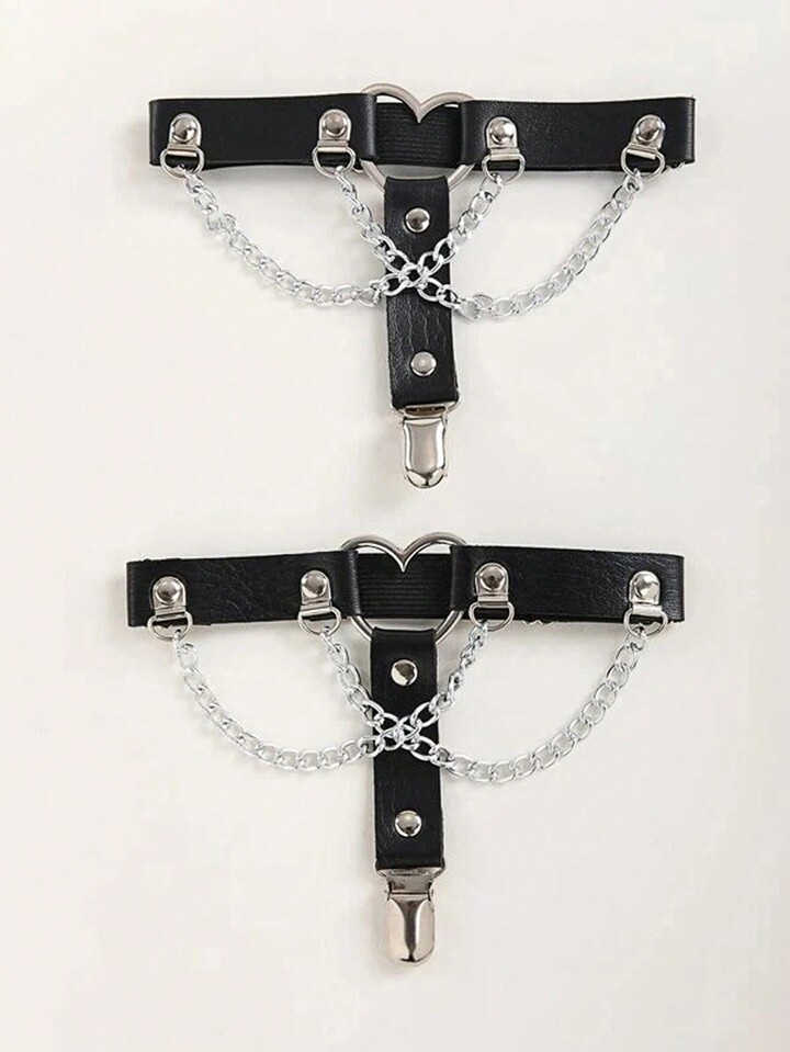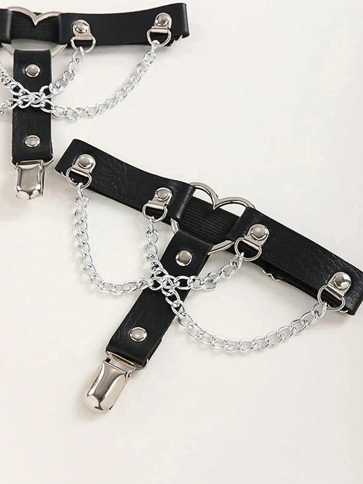 Grunge Punk 2pcs Heart & Chain Decor Garter Belt
