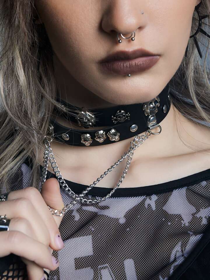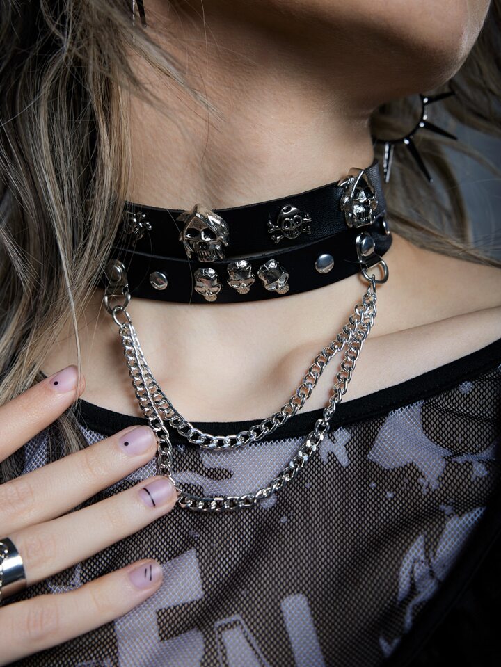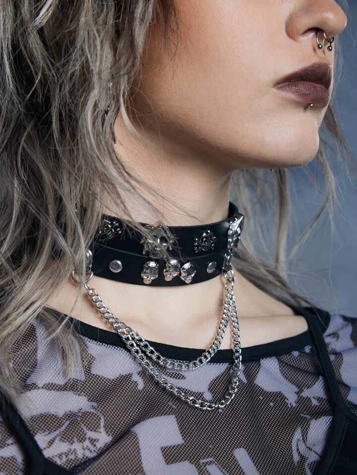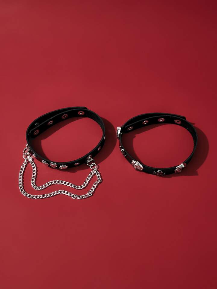 Grunge Punk 2pcs/set Skull & Chain Decor Choker
