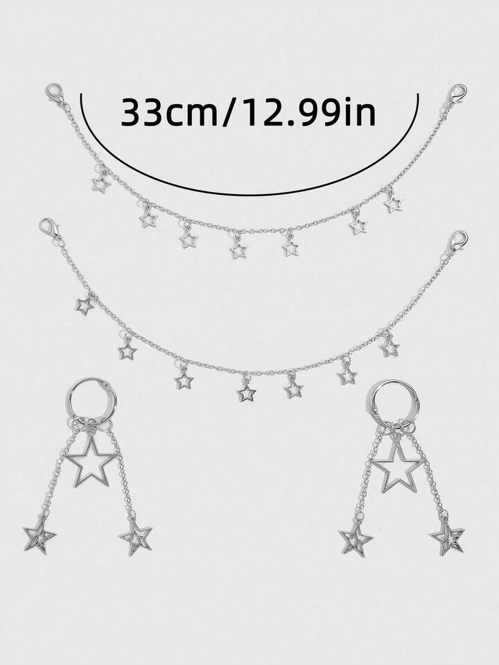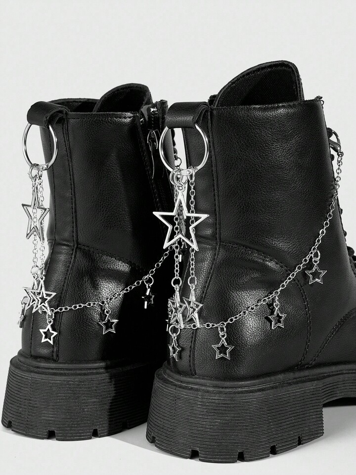 Grunge Punk 4pcs Punk Style Pentagram Chain Shoe Decorations
