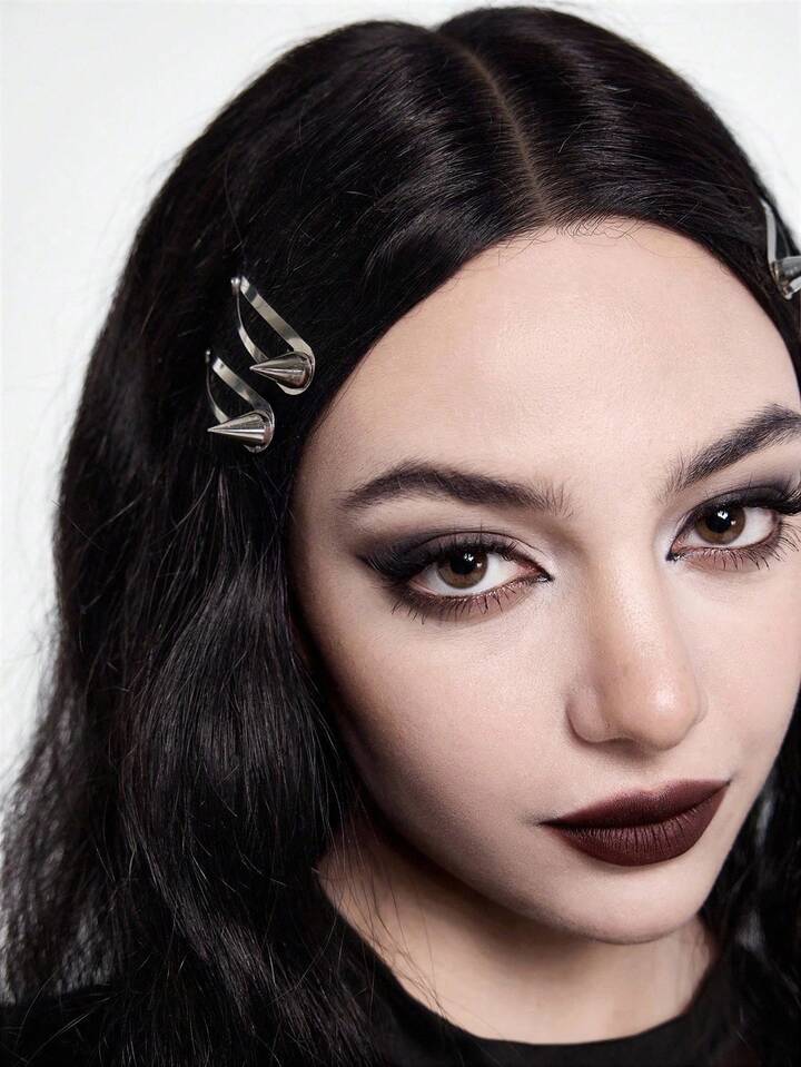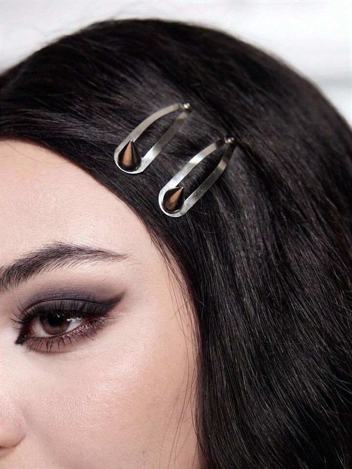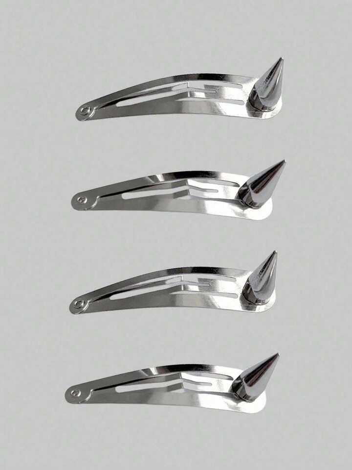 Grunge Punk 4pcs Punk Style Rivet Hair Clips, Y2K Minimalist Silver Solid Color BB Clips, Versatile Creative Daily Hair Accessories
