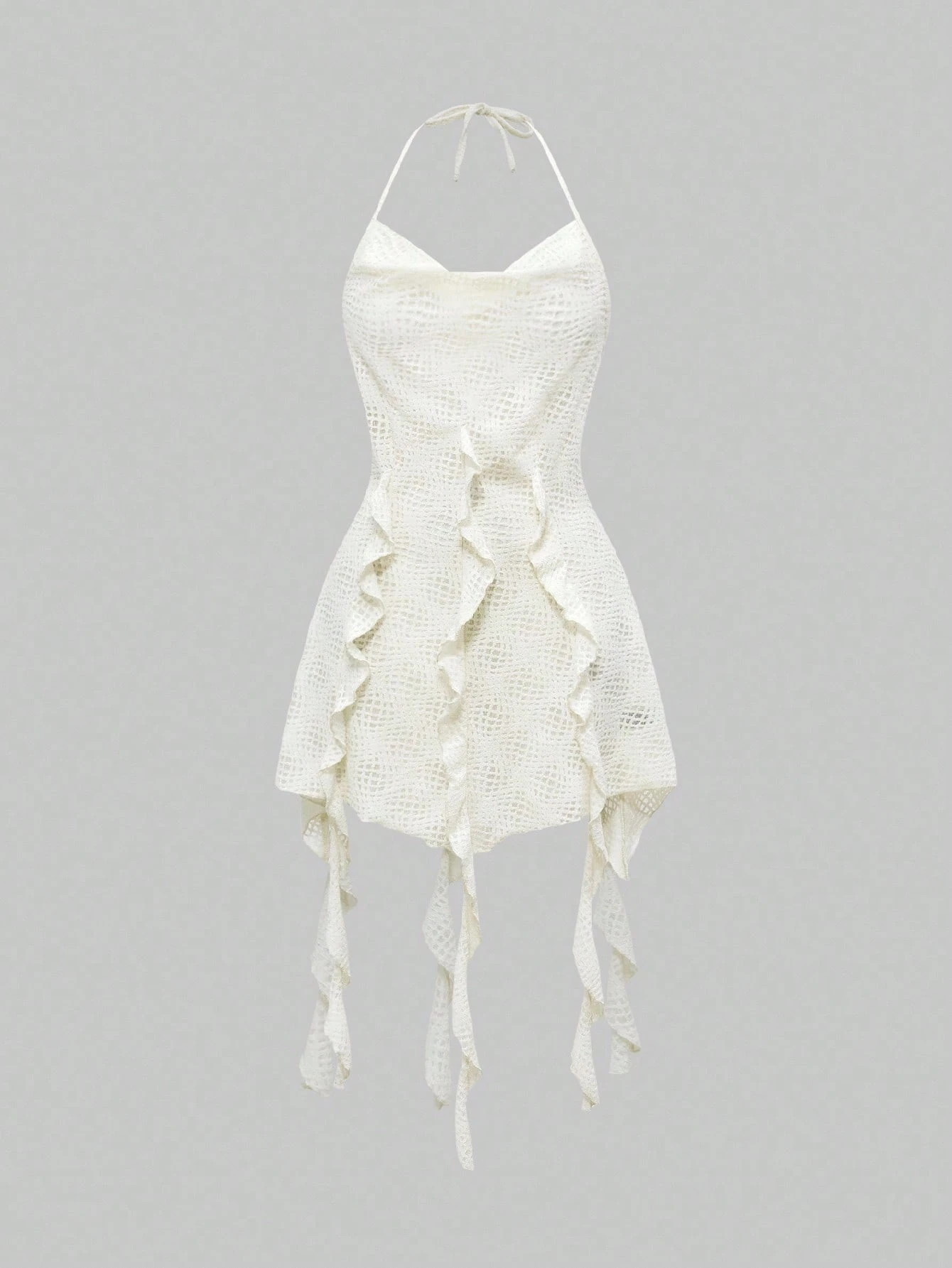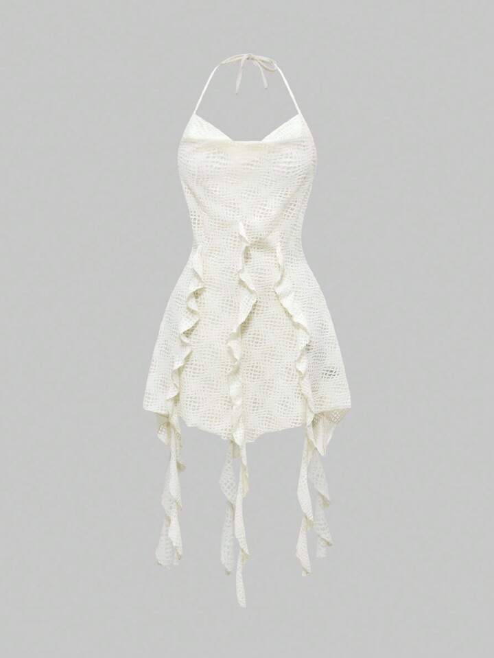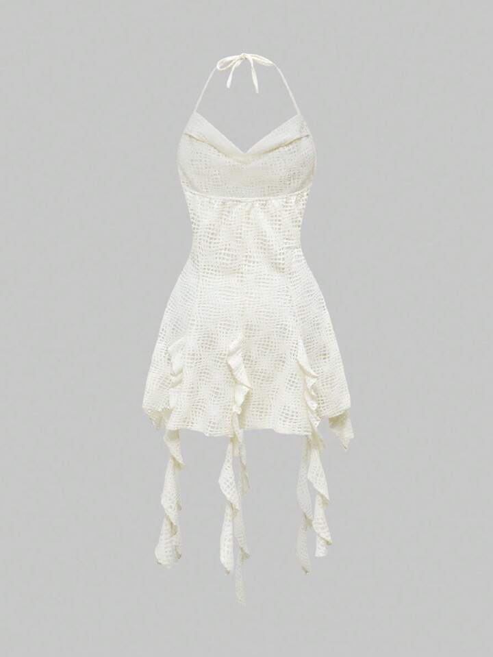 Grunge Punk Asymmetric Ruffle Collar Backless Asymmetrical Hem Blouse For Women