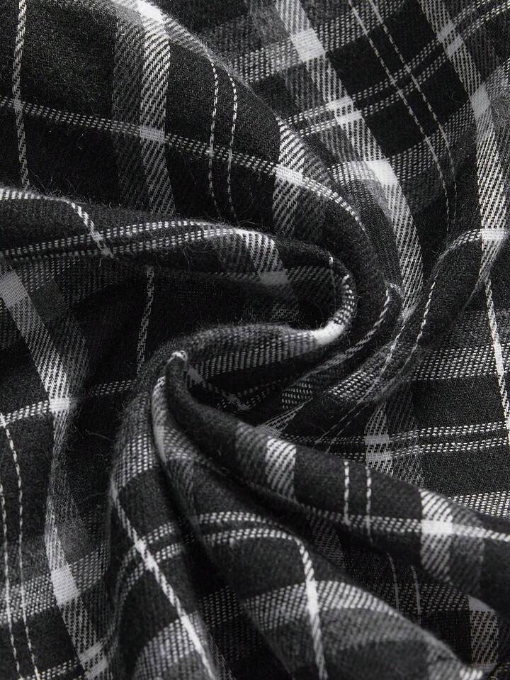 Grunge Punk Asymmetrical Hem Frayed Denim Patchwork Plaid Halter Neck Denim Dress