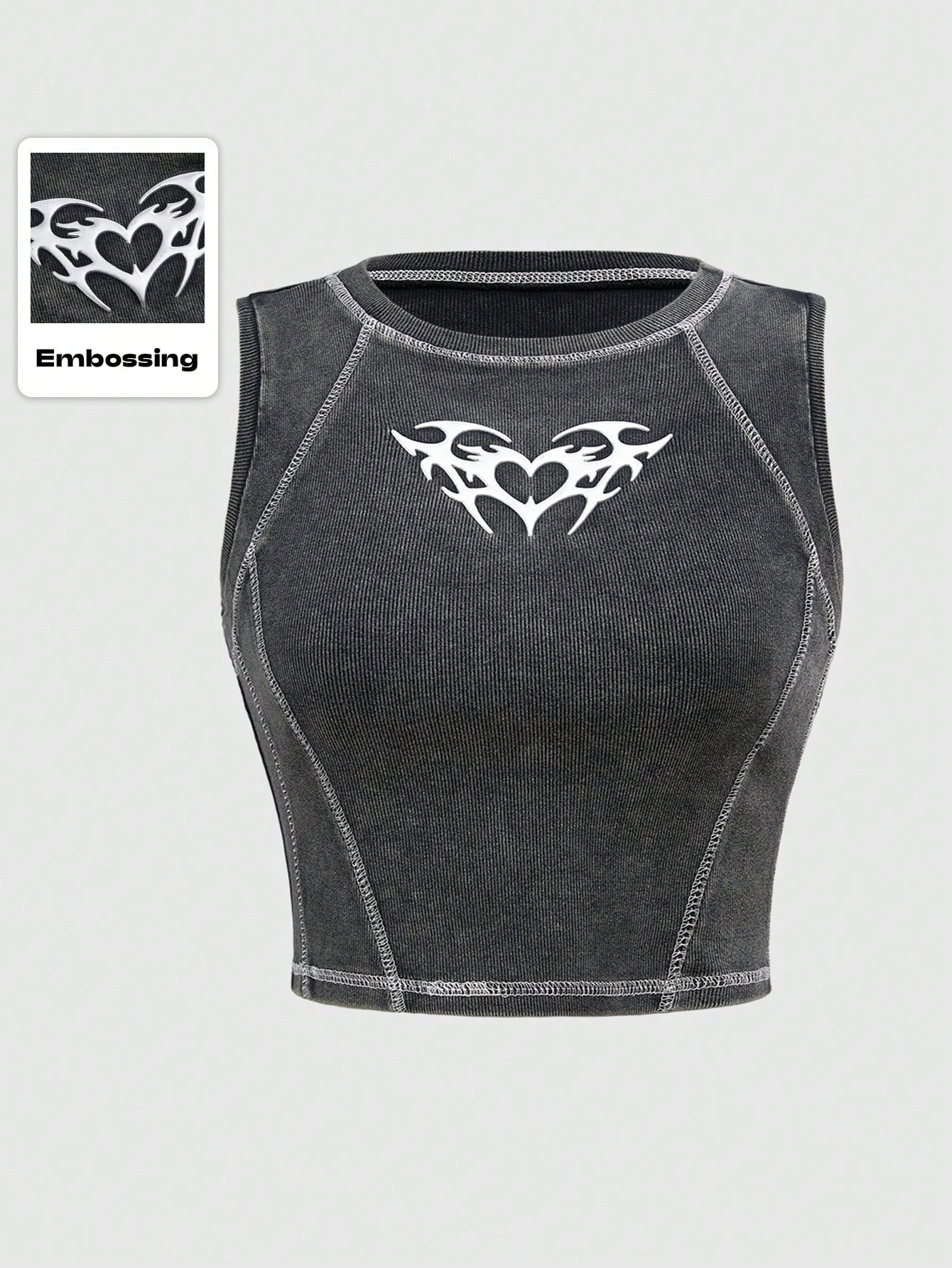 Grunge Punk Back To School Women Plus Size Punk Street Style Metal Graphic Color Block Distressed Washed Fabric Camisole Crop Top Women Graphic