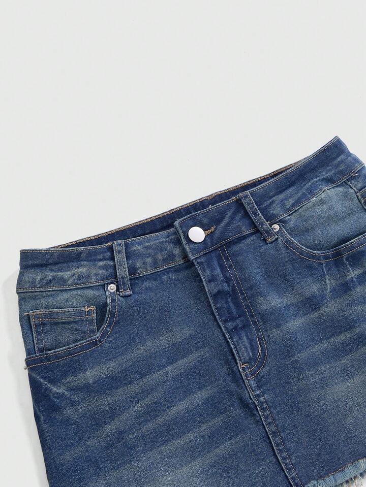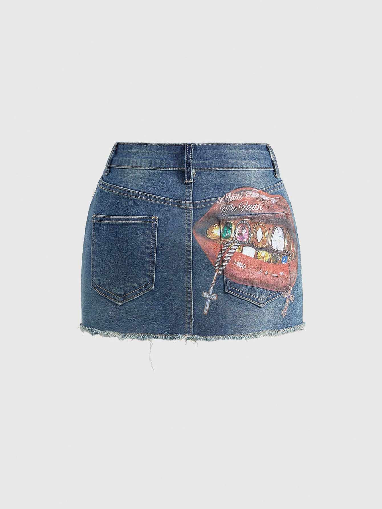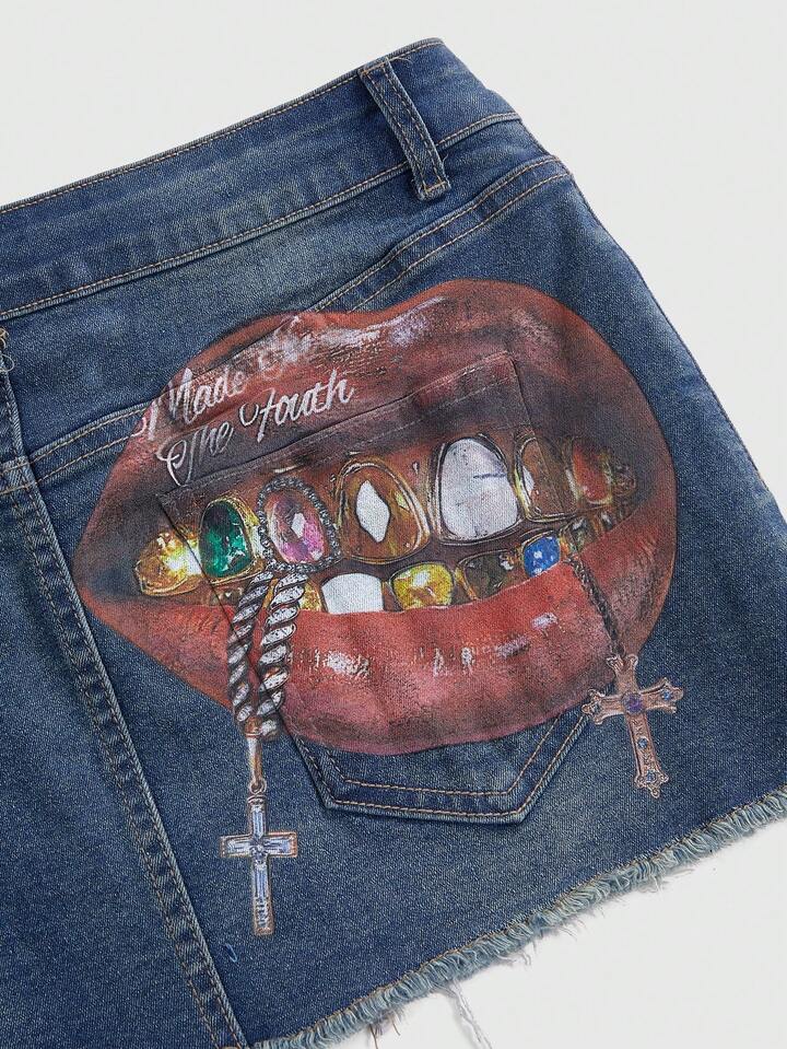 Grunge Punk California Girl Lip Print Bodycon Denim Mini Skirt