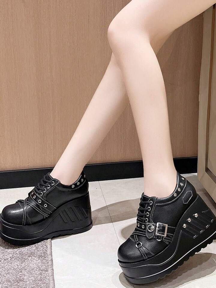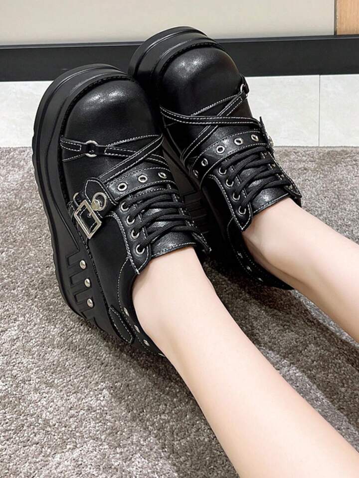Grunge Punk Campus Style Thick-Soled Round Toe Mary Jane Shoes