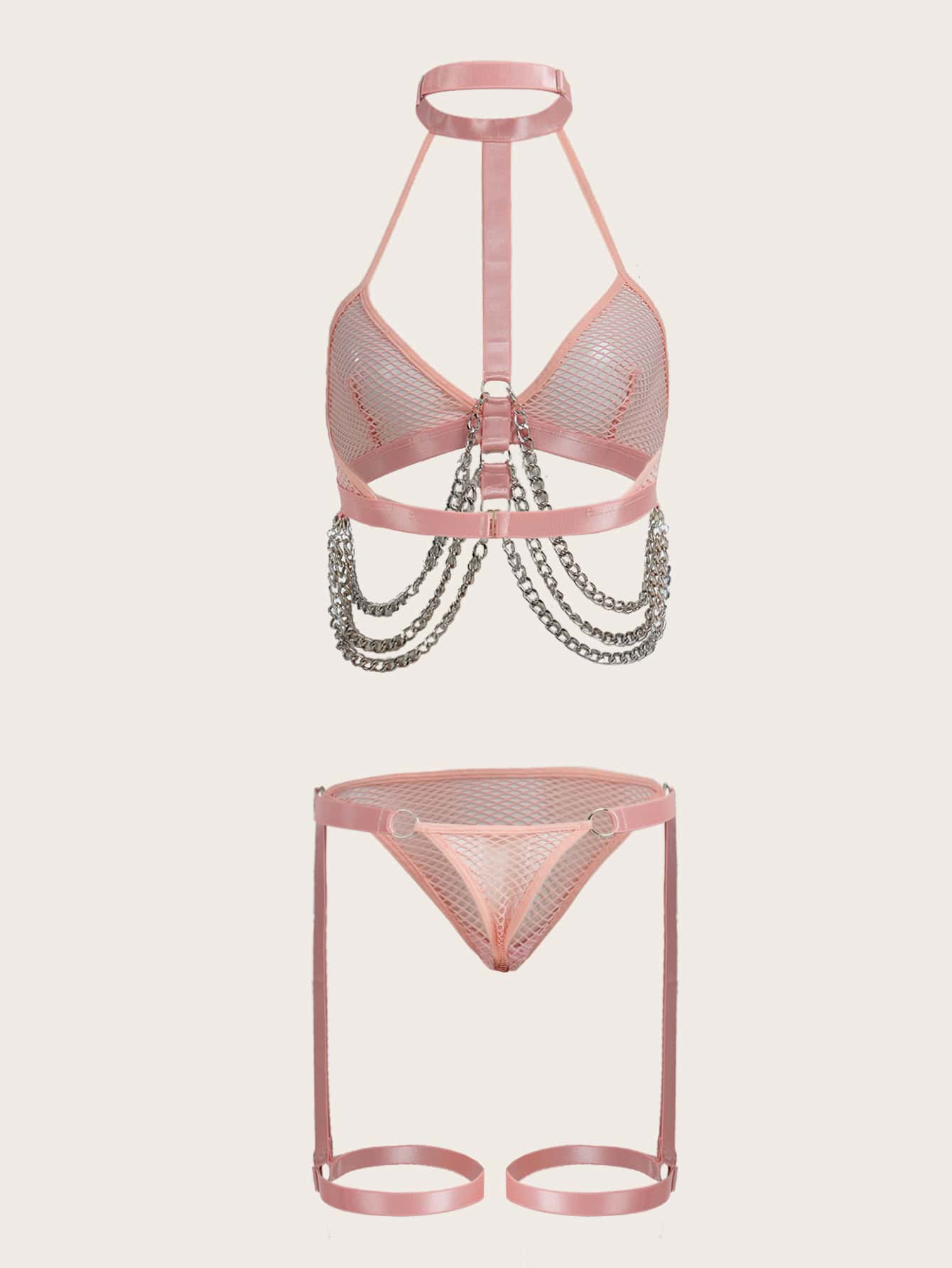 Grunge Punk Chain Linked Harness Garter Lingerie Set
