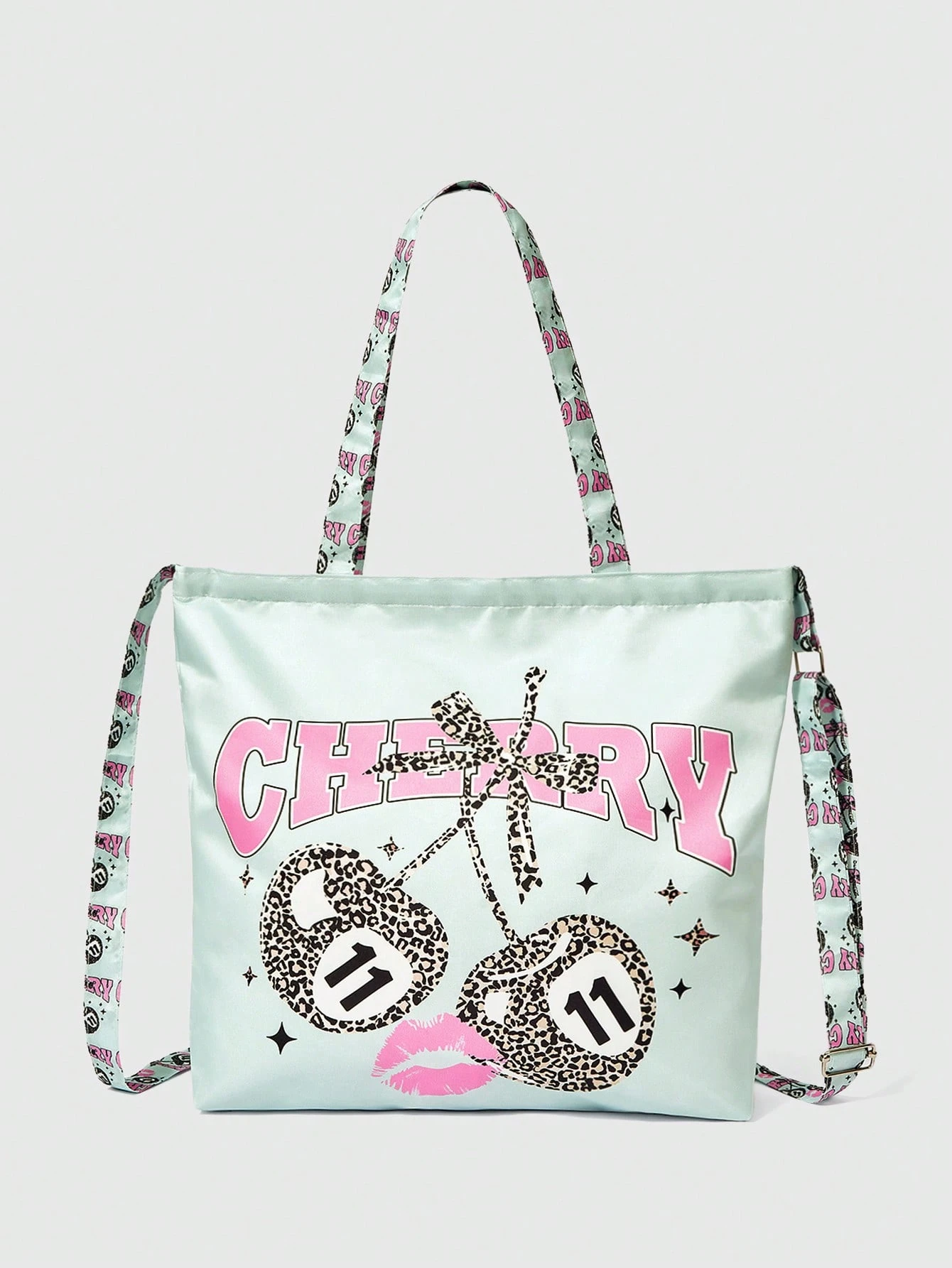 Grunge Punk Cherry Leopard Print Bow Messenger Bag